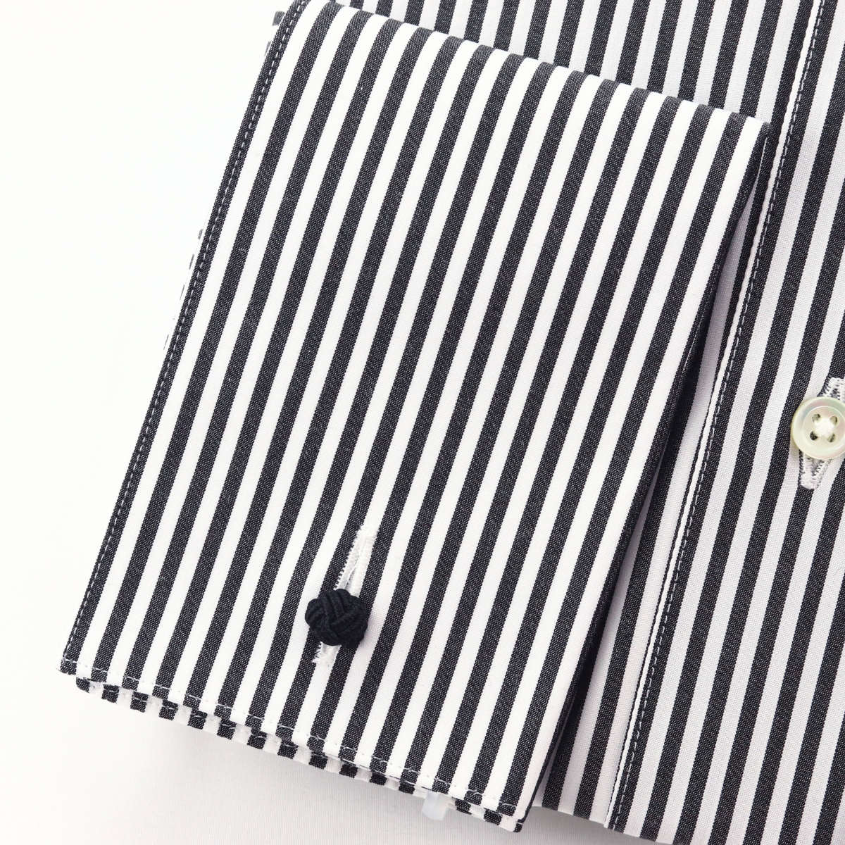 ワイシャツ ピンホールカラー ダブルカフス ブラック 黒 ロンドン ストライプ 綿100% 日本製 長袖 ドレスシャツ | 祝い 結婚式 ビジネス ブランド 高級 プレゼント おしゃれ メンズ 英国 モダン クラシック ビジネスシャツ 紳士 国産 カラーピン
