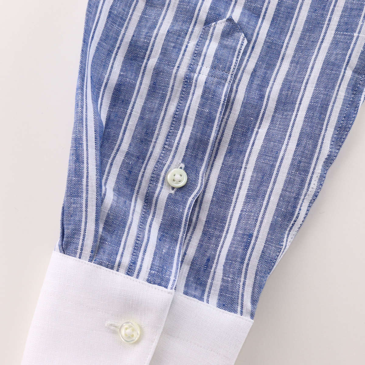 ワイシャツ ラウンドカラー クレリック リネン ネイビー ストライプ 麻100% 日本製 長袖 メンズ ドレスシャツ フレンチリネン | 祝い プレゼント ブランド 結婚式 人気 おしゃれ ギフト 男性 スーツ 高級 かっこいい 仕事