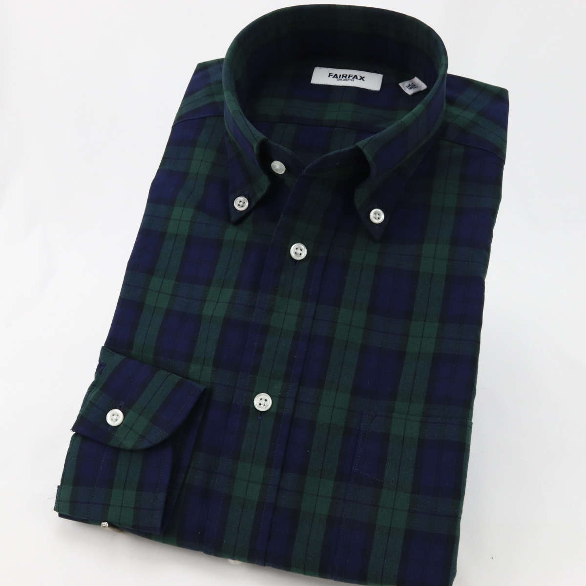 フェアファクス FAIRFAX ボタンダウンシャツ ブラックウォッチ タータンチェック ネイビー×グリーン×ブラック 綿100% 日本製 スリム 長袖