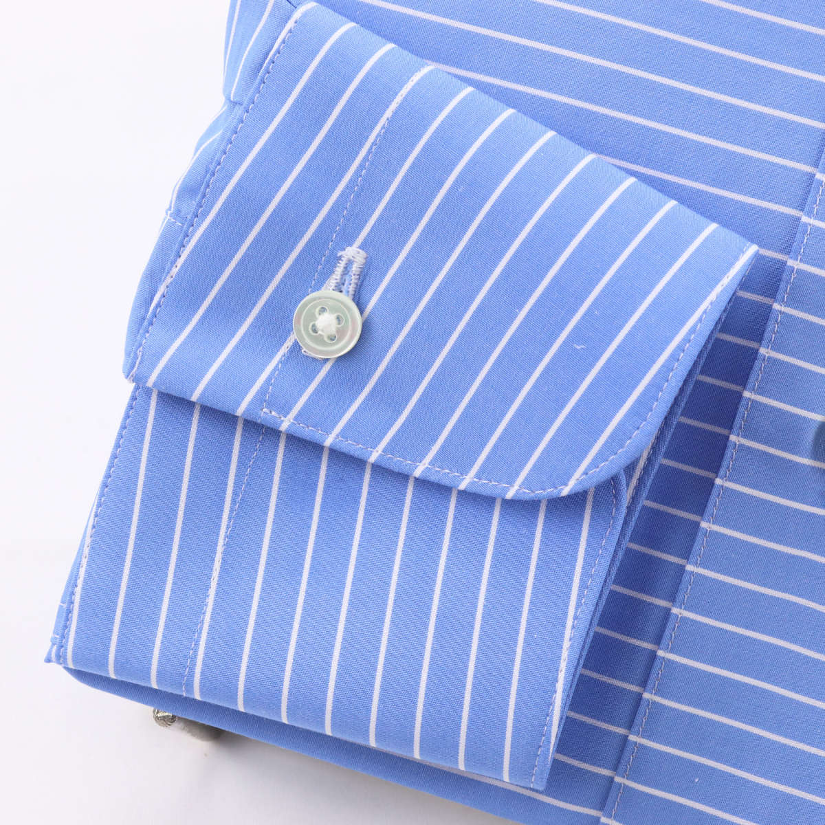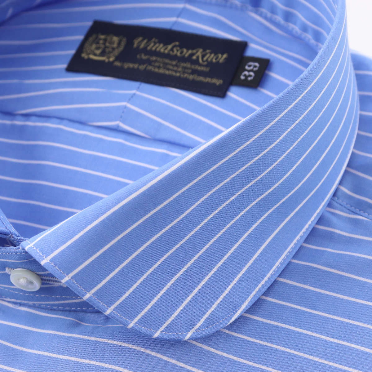 ウィンザーノット ワイシャツ ラウンドカラー 地付きボーダー スカイブルー×ホワイト スーピマコットン 120番手双糸ポプリン 綿100% 日本製 メンズ 長袖