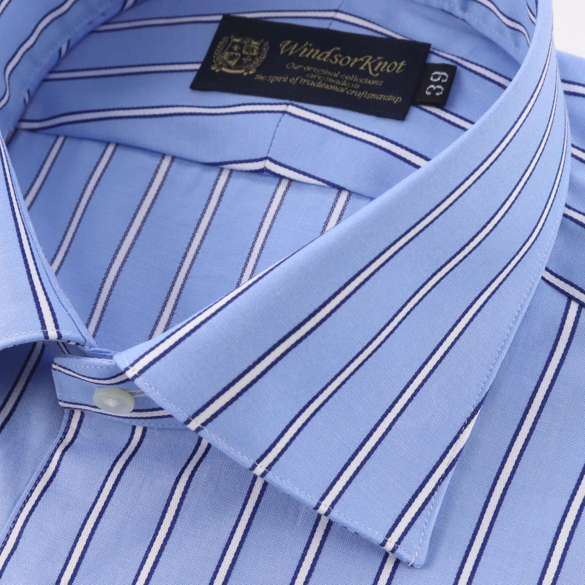 ウィンザーノット ワイシャツ ワイドカラー 地付きストライプ スカイブルー×ホワイト×ネイビー コンパクトヤーン 80番手双糸 綿100% 日本製 メンズ 長袖 父の日