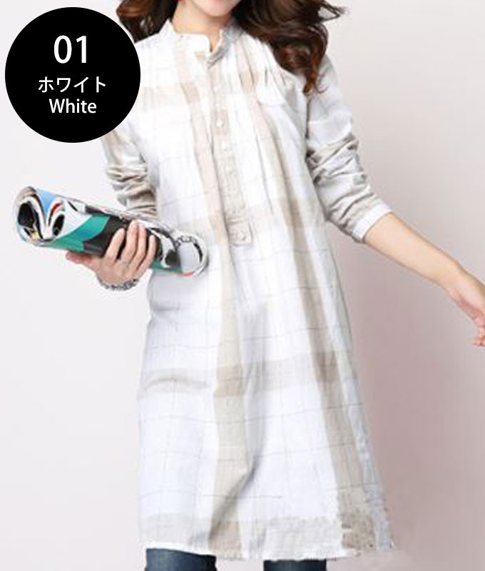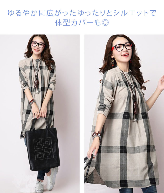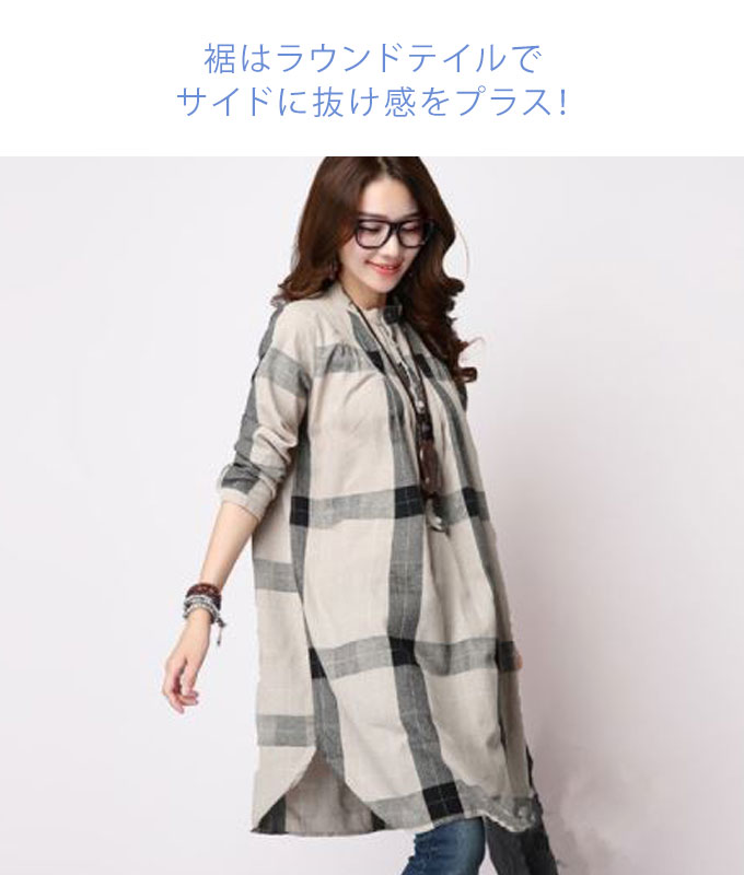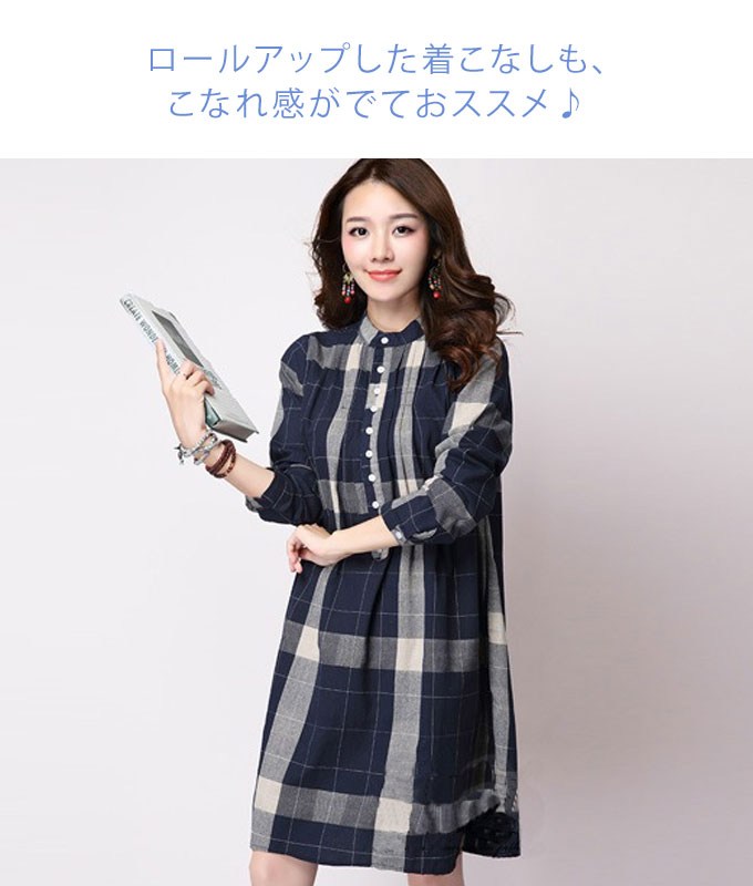 シャツワンピース 膝丈 春 長袖 【メール便送料無料】 シャツワンピ チェック柄 チュニック チェック ワンピース シャツチュニック トップス レディース 大きいサイズ チェックワンピ カジュアル 白 ネイビー おしゃれ 体型カバー