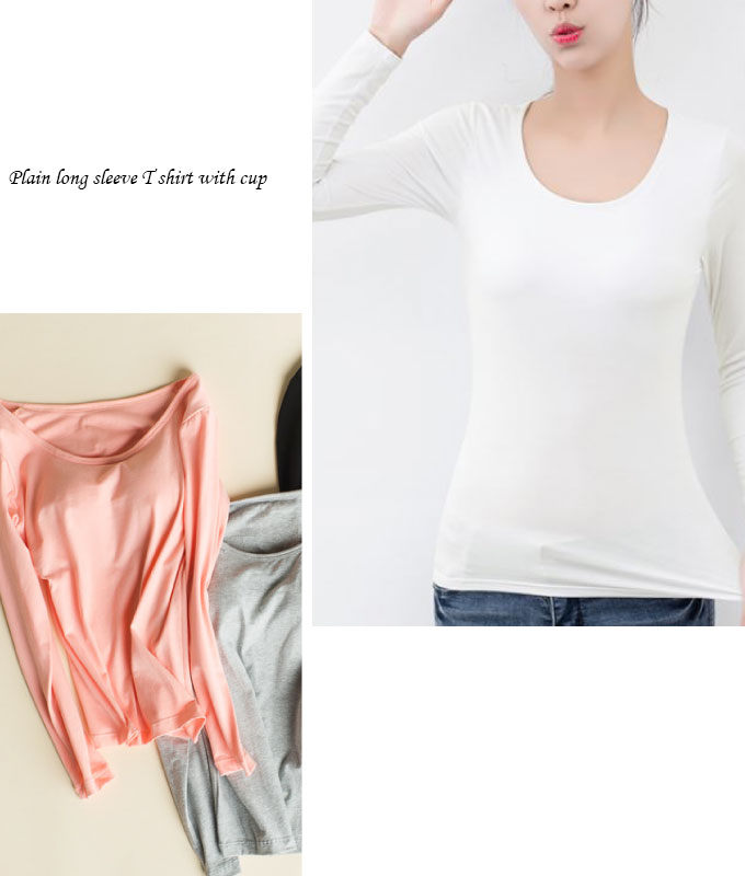 カップ付き 長袖 tシャツ インナー トップス レディース 大きいサイズ 長袖インナー カップ付きインナー カットソー 冬 秋 Uネック 下着 肌着 パッド付き ルームウェア 黒 グレー ピンク 赤 【メール便送料無料】