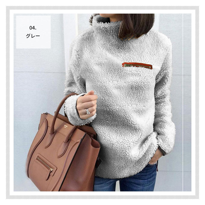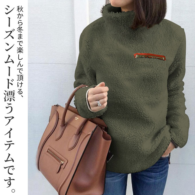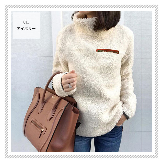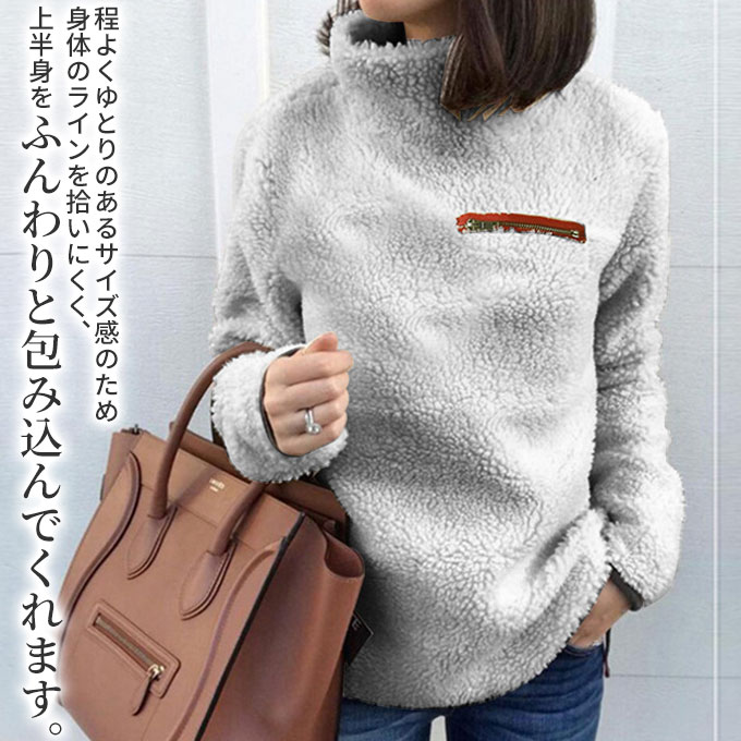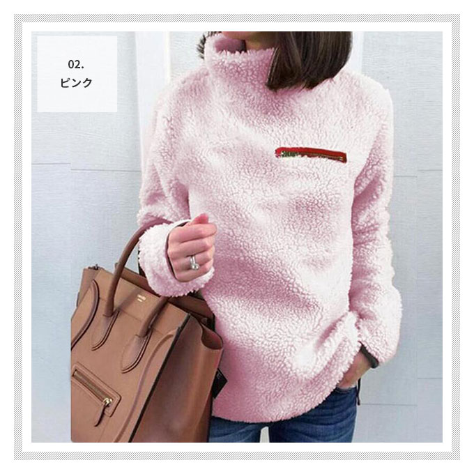 プルオーバー レディース 長袖 ボア ハイネック 【メール便送料無料】 軽い 大きいサイズ 秋 冬 秋冬 トップス もこもこ ゆったり 楽ちん カジュアル 防寒 防寒グッズ 軽量 動きやすい 暖かい 可愛い かわいい おしゃれ トレンド ピンク