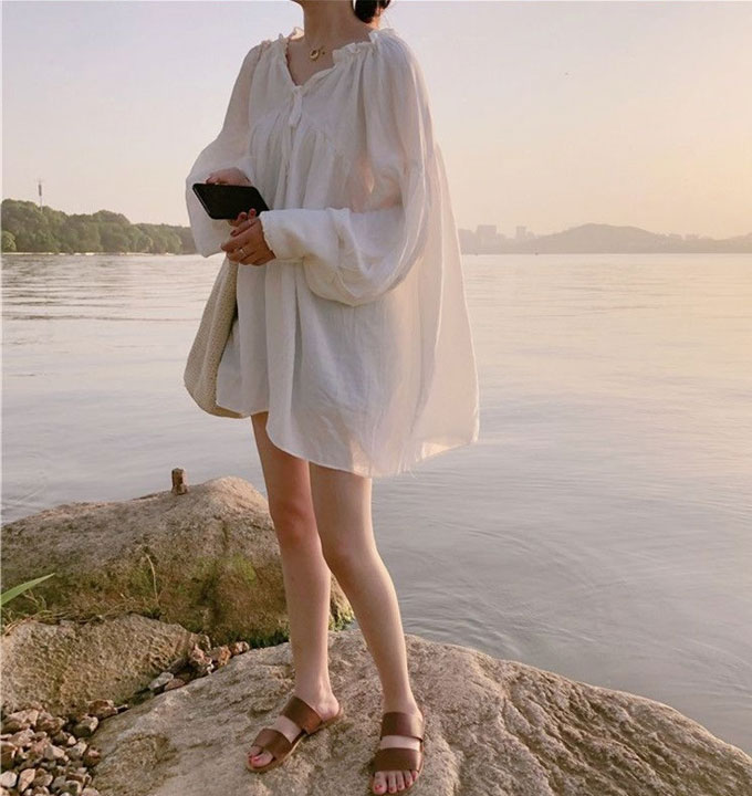レディース チュニック 長袖 ブラウス 春 大人可愛い ミニワンピース フレア 韓国 白 黒 【メール便送料無料】 体型カバー 韓国ファッション ナチュラル おしゃれ