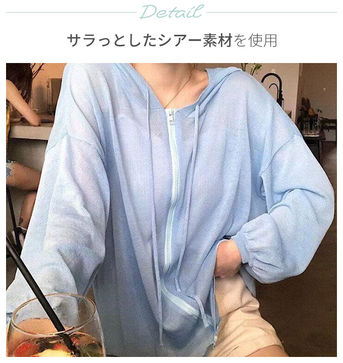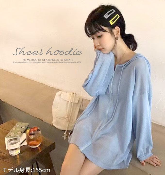 シアー パーカー レディース 薄手 夏 透け感 トップス ライトアウター 冷房対策 長袖 【メール便送料無料】 シアーパーカー オーバーサイズ フード付き 涼しい 日焼け防止