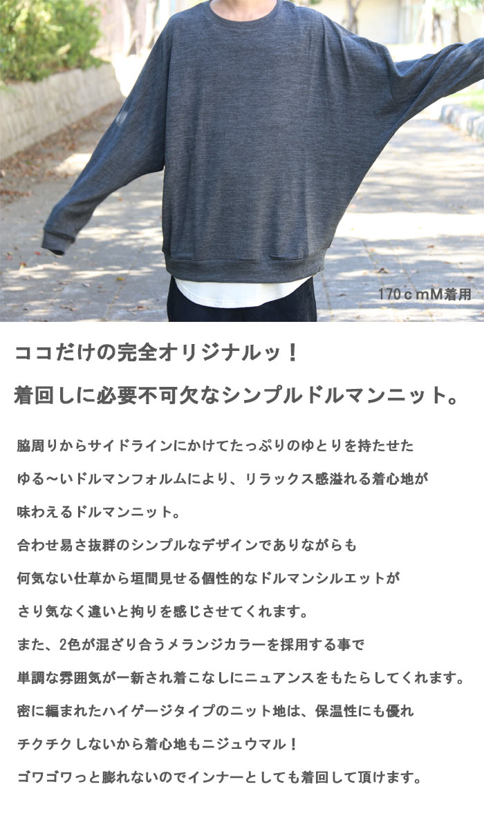 再販!『オリジナル!』!!ドルマンニット☆ [M便 1/1] ドルマン メンズ メランジニット メンズ ニット 秋服 メンズ 冬服 メンズ 春服 無地ニット ビッグニット メンズ ドルマンニット ゆったり 大きい 大きめ シンプル 広い 広め カラバリ M L XL 袖 ゆったり ニット 無地