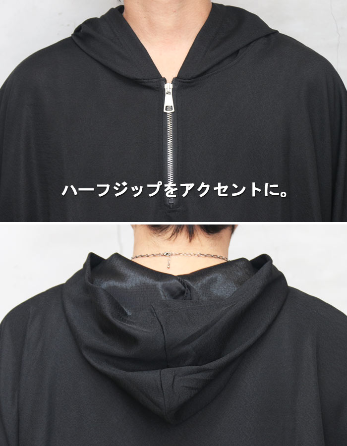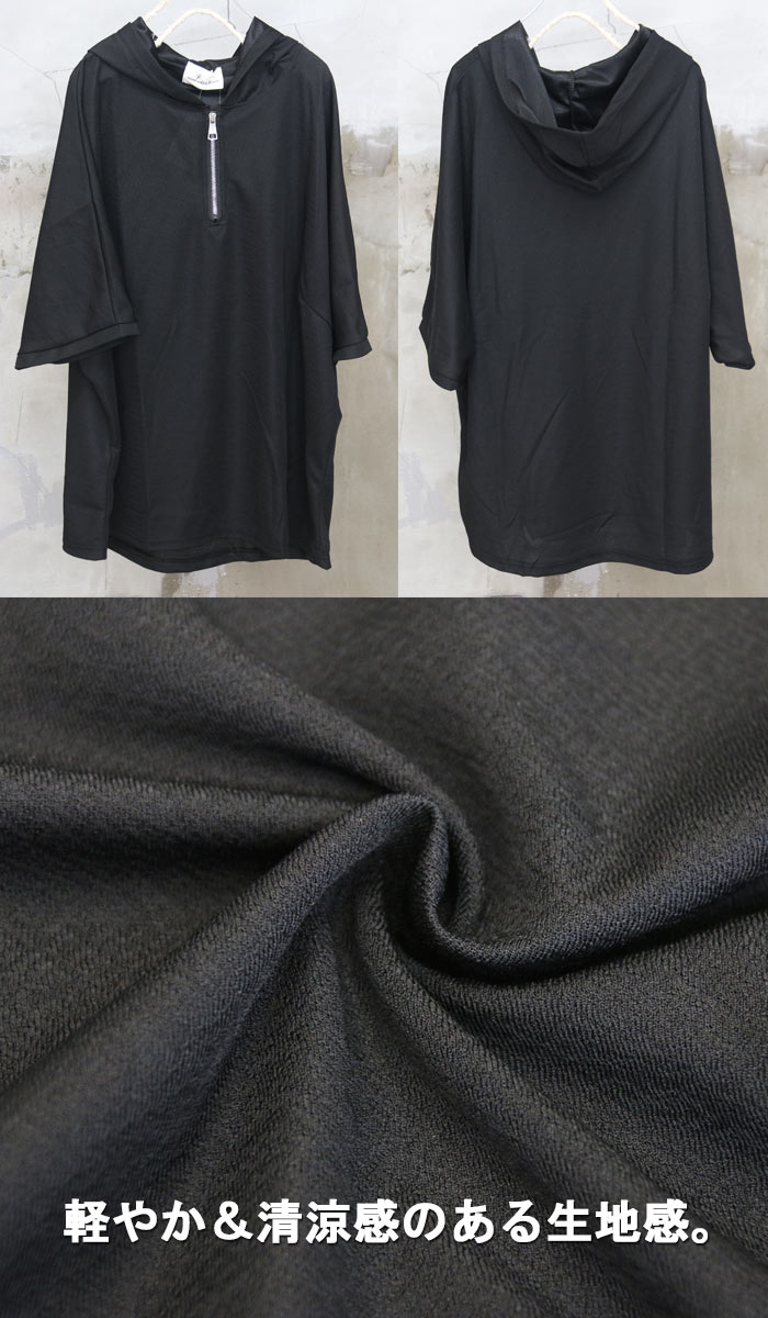 父の日 ハーフジップドルマンパーカー メンズ [M便 1/1] ハーフジップパーカー ドルマンパーカー 半袖パーカー 5分袖パーカー 無地パーカー メンズファッション ブラック 黒 春服 夏服 メンズ ハーフジップ ドルマン ビッグ 大きい 大きめ 半袖 5分袖 woodwh