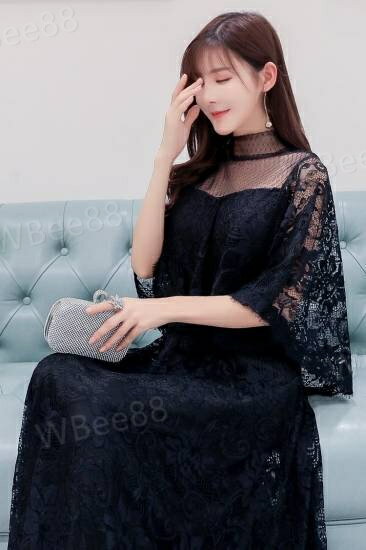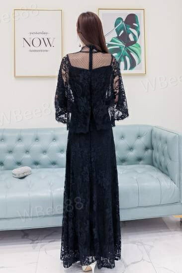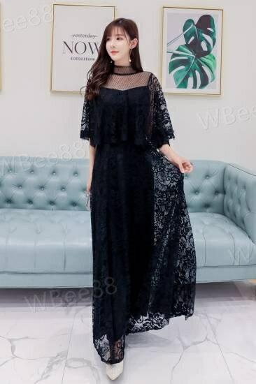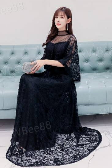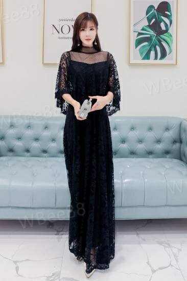 パーテイードレス 個性的 ロング 総レース ケープ風 黒 白 袖あり かっこいい 大きいサイズ 透け感 結婚式 お呼ばれ ドレス 演奏会 ロングドレス マキシ フォーマル きれいめ 韓国 2XL 3XL 4XL 体型カバー ブラックドレス 春 夏 ワンピース 袖付き 発表会 大人ドレス 人気