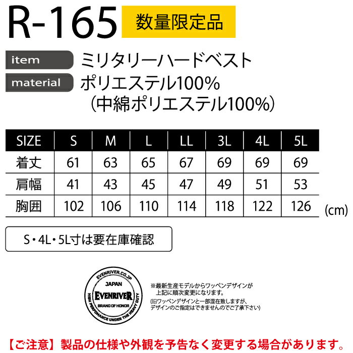 イーブンリバー EVENRIVER 防寒着 R-165 ミリタリーハードベスト S-5L 秋冬用 作業着 おしゃれ アウトドア 登山 釣り キャンプ レジャー