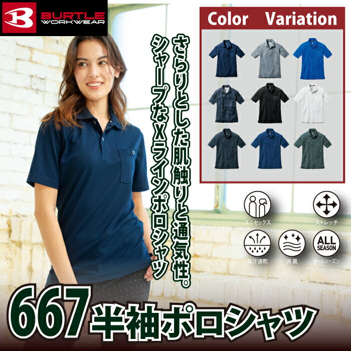 バートル 作業服 作業着 2023春夏新作 インナー 667 半袖ポロシャツ SS~3L おしゃれ ドライ 消臭 BURTLE メンズ レディース アウトドア 登山 釣り 通勤 通学 トレーニング ランニング フィットネス スポーツ ゴルフ 練習着 レジャー