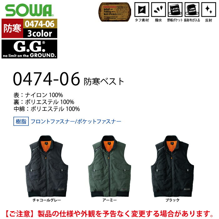 桑和 SOWA 作業服 防寒着 秋冬用 0474-06 防寒ベスト M-LL