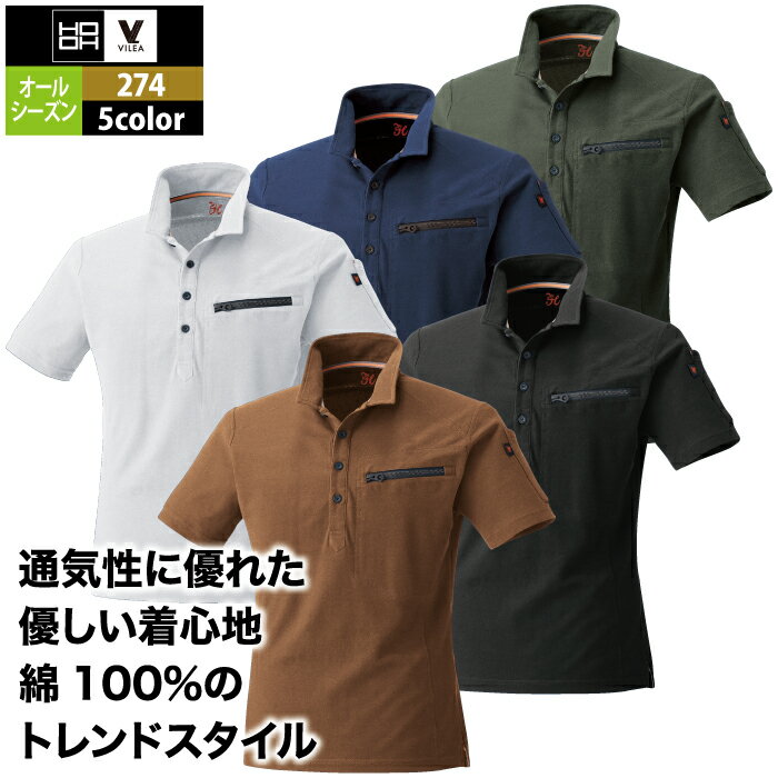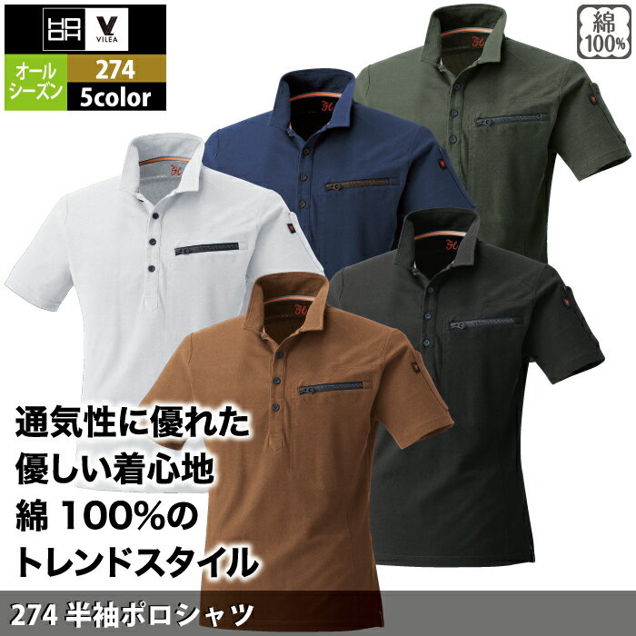 作業服 オールシーズン 村上被服 HOOH 鳳凰 274 半袖ポロシャツ S~3L