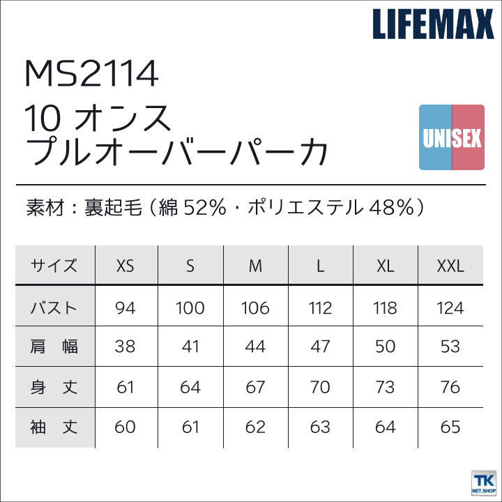 LIFEMAX パーカー スウェット 長袖 シャツ ライフマックス 男女兼用 ボンマックス 秋冬 bm-ms2114