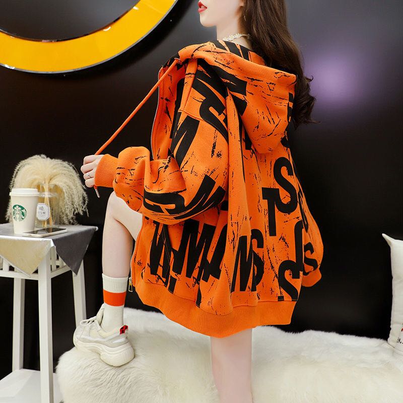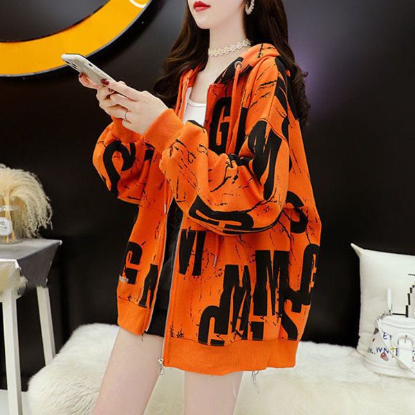 レディースパーカー ジップ ジップパーカー ジップアップパーカー ジップアップ フードパーカー パーカー アウター トップス 長袖 春秋 レディース 薄手 フード付き 大きいサイズ ゆったり 総柄 ビッグシルエット 大きめ グレー 白 ホワイト オレンジ M L XL 2XL LCCA080