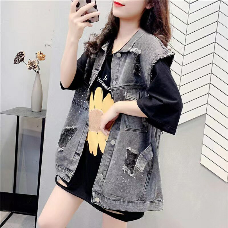 レディース デニムベスト 春 夏 アウター ダメージ加工 トップス ゆったり 薄手 デニムトップス 可愛い カジュアル ノースリーブ ベスト 春アウターレディース おしゃれベスト 春夏ベスト 袖なしジージャン ポケット 春ベスト デニムジレ 春夏 グレー 青 S M L XL SLUA118