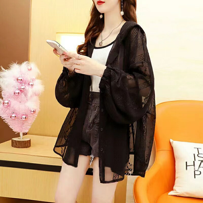 日焼け止め レディース 夏 ゆったり 透け感 トップス カジュアル 長袖 薄手 可愛い アウター シャツ ブラック ホワイト S M L XL 2XL SLCA019