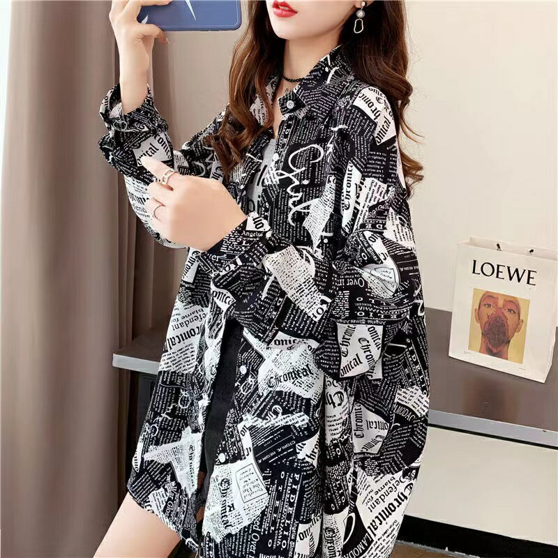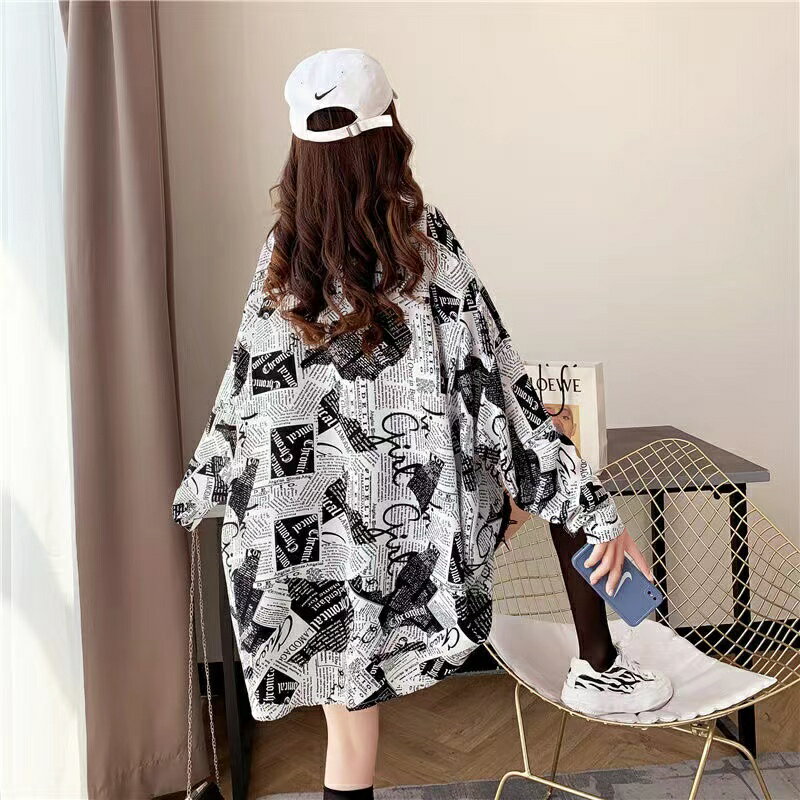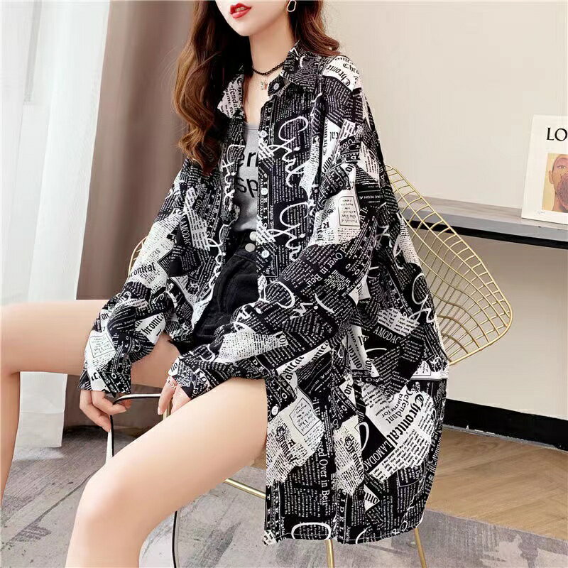 日焼け止め レディース 夏 ゆったり 総柄シャツ 透け感 トップス カジュアル 長袖 薄手 可愛い アウター シャツ ブラック ホワイト M L XL 2XL SLCA025