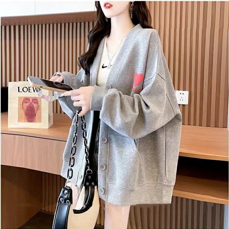 スウェットカーディガン パーカー レディース アウター レディース 胸プリント ワンポイント バックプリント はおり 羽織 羽織りもの 秋 ゆったり トップス カジュアル ハート柄 オーバーサイズ ビッグシルエット 可愛い ホワイト グレー ブラック 白 黒 M L XL 2XL SLCA029