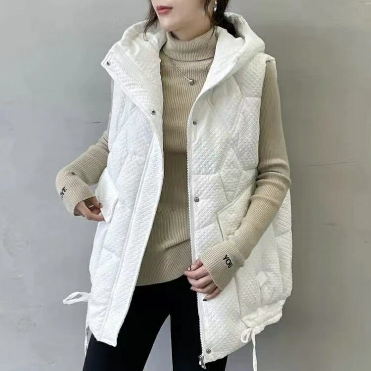 中綿ベスト ベストコート フード付きベスト 厚手 綿入れ アウター ロングアウター 袖なし 秋 冬 レディース シンプル カジュアル ゆったり 大きいサイズ 無地 通勤 通学 SLCB080(2色M-2XL)