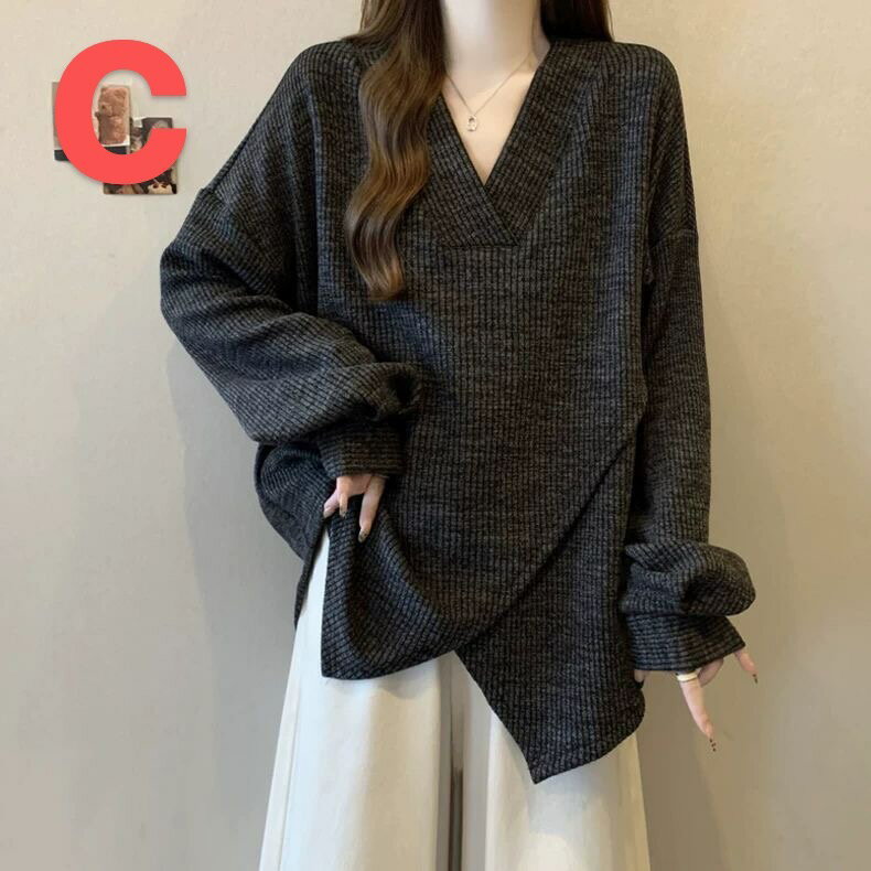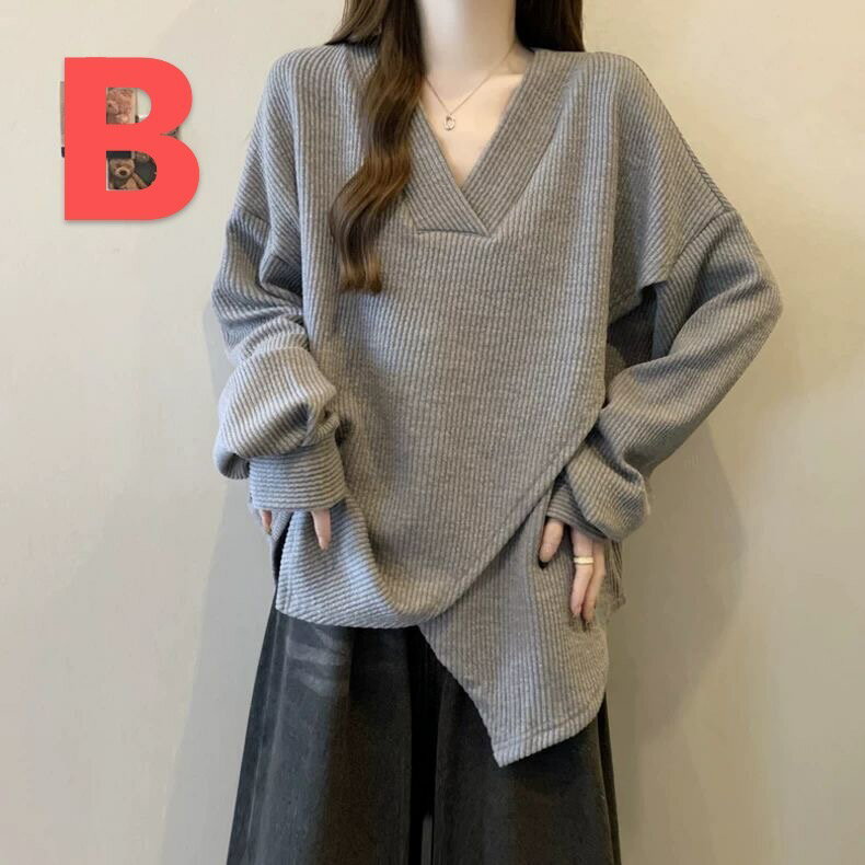 トレーナー レディース トップス レディーストップス Vネック 無地 シンプル レディース洋服 普段着 大きいサイズ リブ 春秋 秋服 春服 長袖 ゆったり 体型カバー カジュアル 大人 可愛い LUFA262(3色M-3XL)