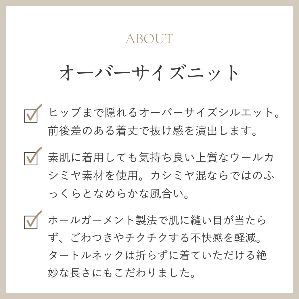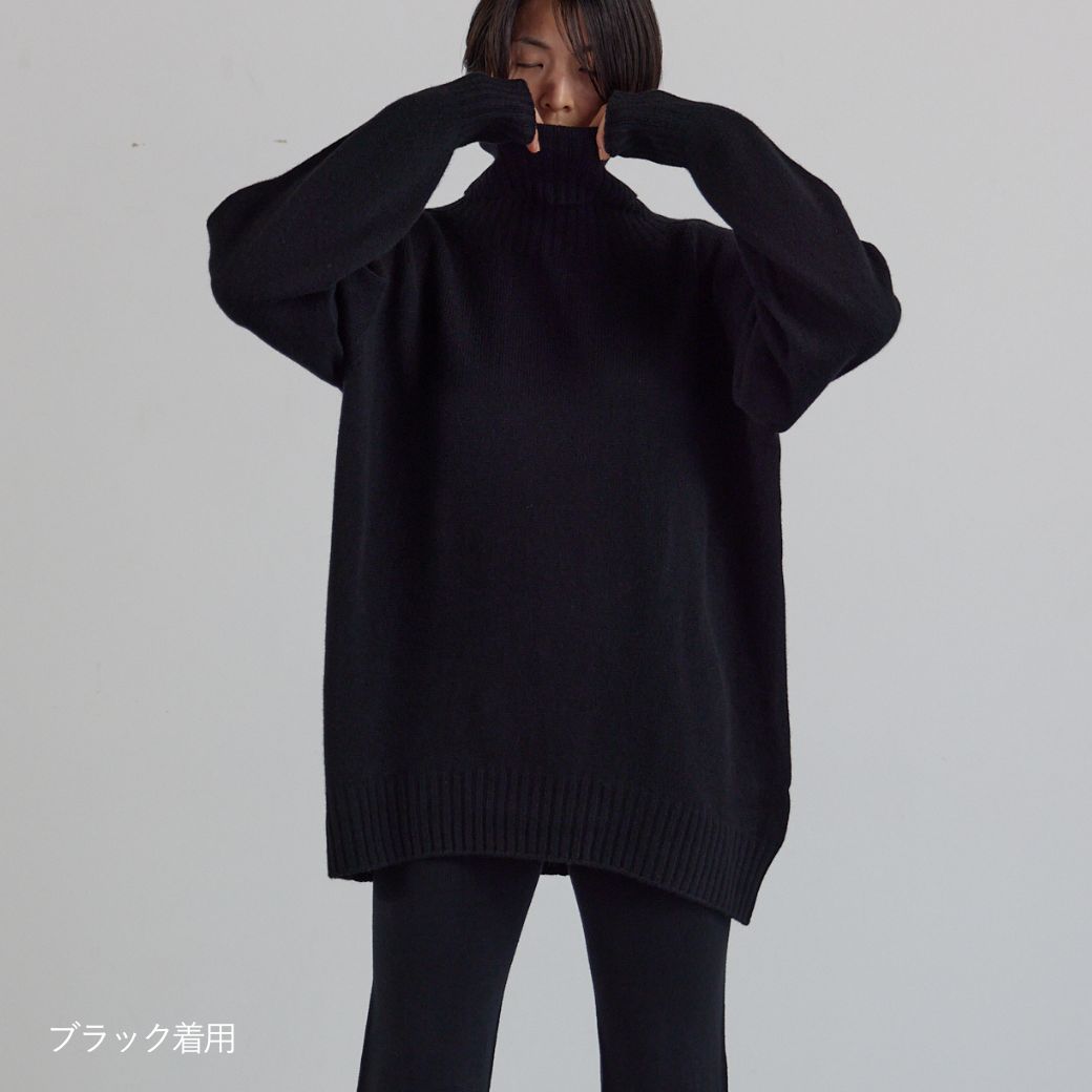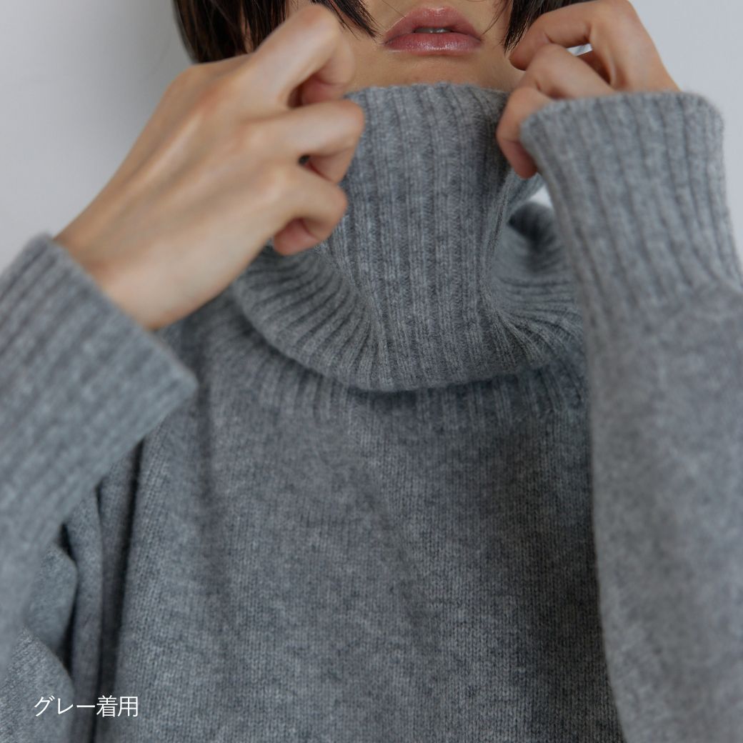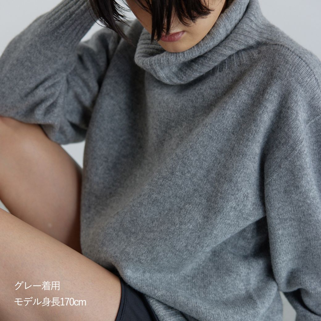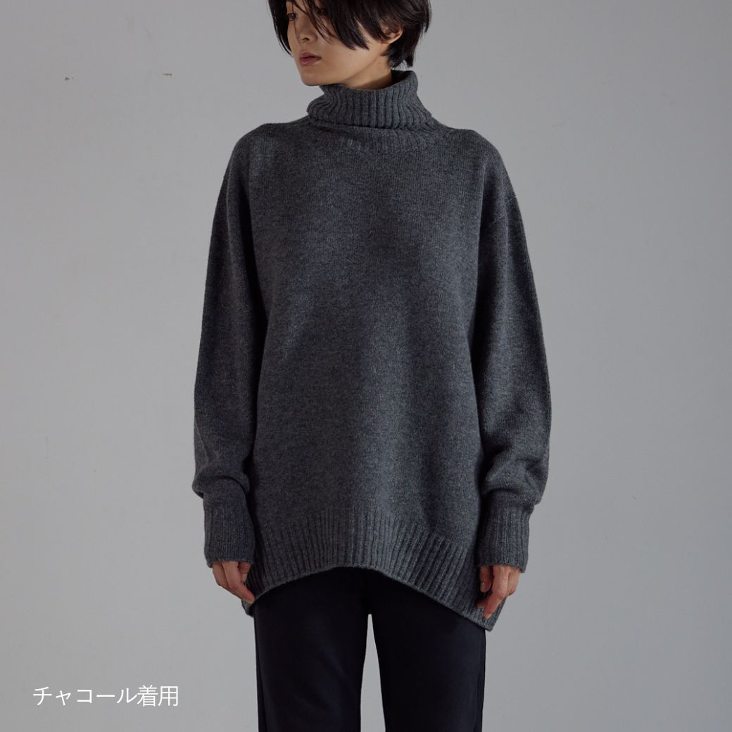 オーバーサイズタートルニット チャコール クリーム 日本製 レディース 防寒 秋 冬 秋冬 タートルニット ウール カシミヤ カシミア ラウンジレイ レイ lounge WRAY