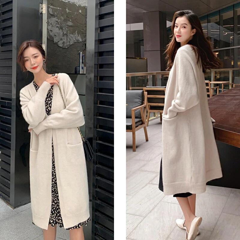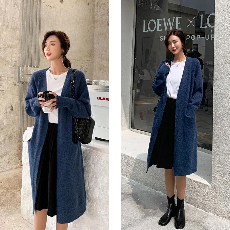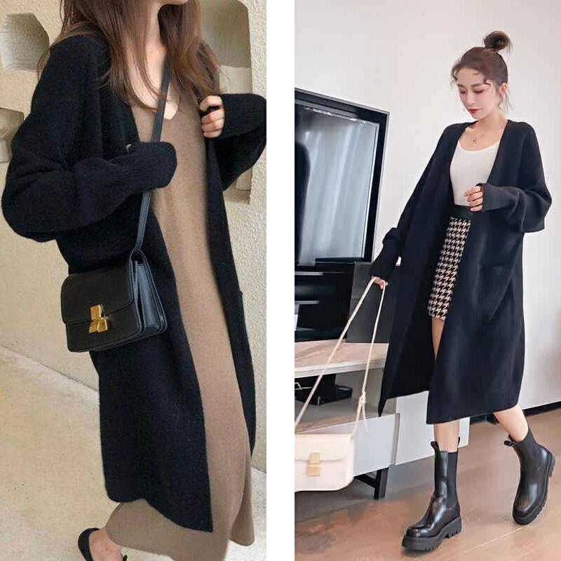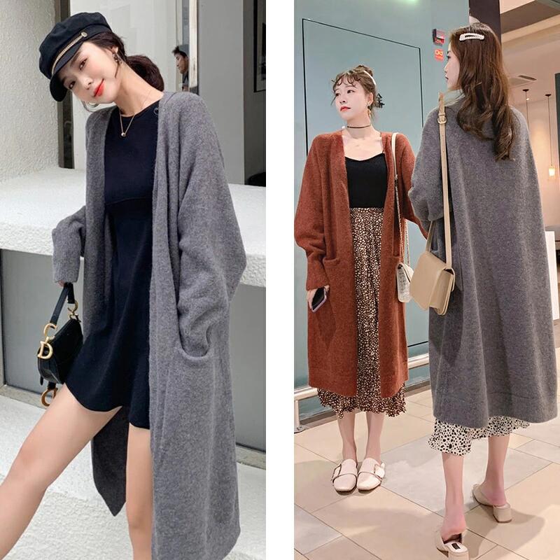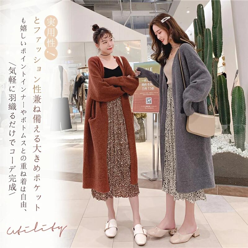 【10/03!クーポンで3480円】★秋ファッション★ ニットカーディガン ロング レディース 長袖 厚手 無地 羽織り ポケットアウター 通勤 シンプル 体型カバー ゆったり 細見え ママ ホワイト ブラック グレー キャラメル ブルー ハイゲージ