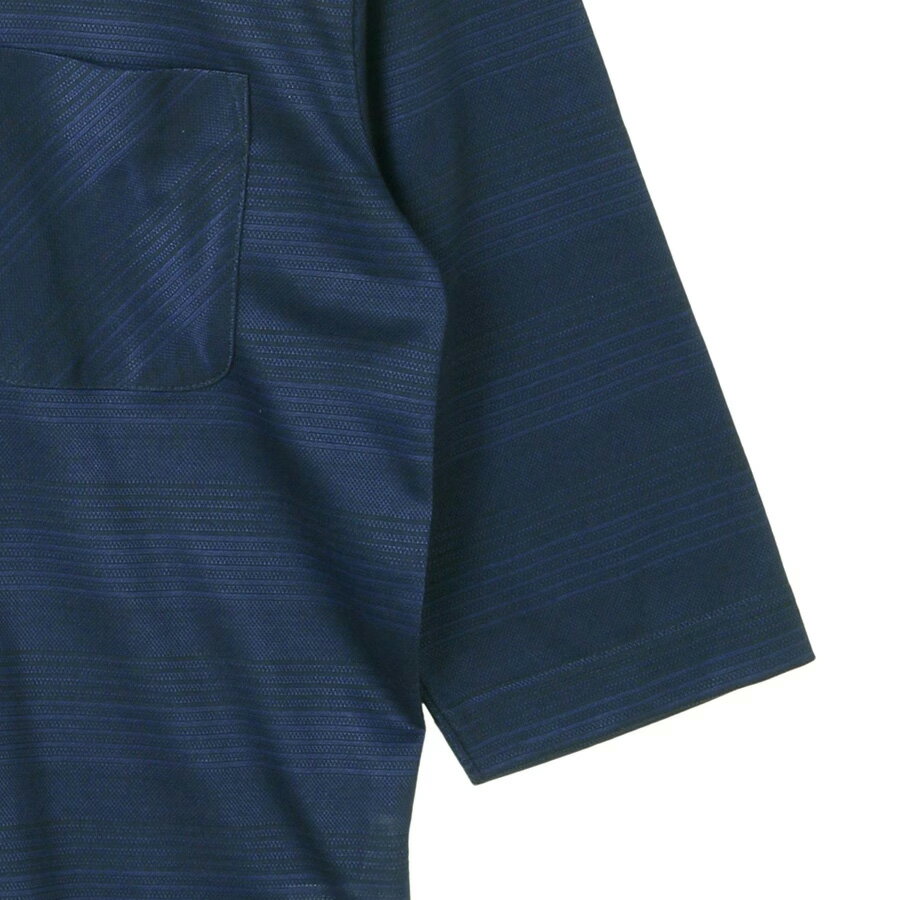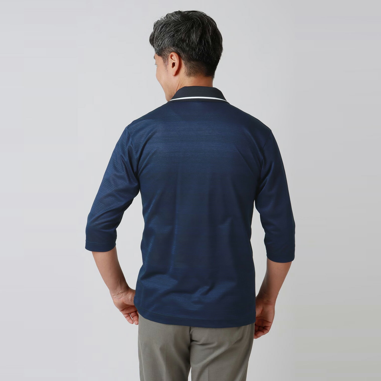 【洋服の青山】春夏用 ネイビー系 地柄ボーダー ポロシャツ【7分袖】ウォッシャブル 洗える 吸汗速乾 すぐ乾く ボーダー クールビズ ビジネス メンズ 大きいサイズ 涼しい トップス シャツ カジュアル 紳士服 厚手 かっこいい おしゃれ ポケット付き【日本製】【Tex-Tea】
