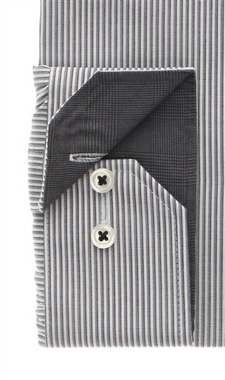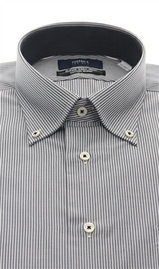 【洋服の青山】ワイシャツ メンズ 長袖 スリム オールシーズン グレー ストライプ ボタンダウン 襟裏切替 シワになりにくい 洗える 形態安定 ビジネス オフィス ビジカジ 仕事 春夏秋冬 Yシャツ カッターシャツ メンズシャツ 男性 細身体 スタイリッシュ スリム カラーシャツ