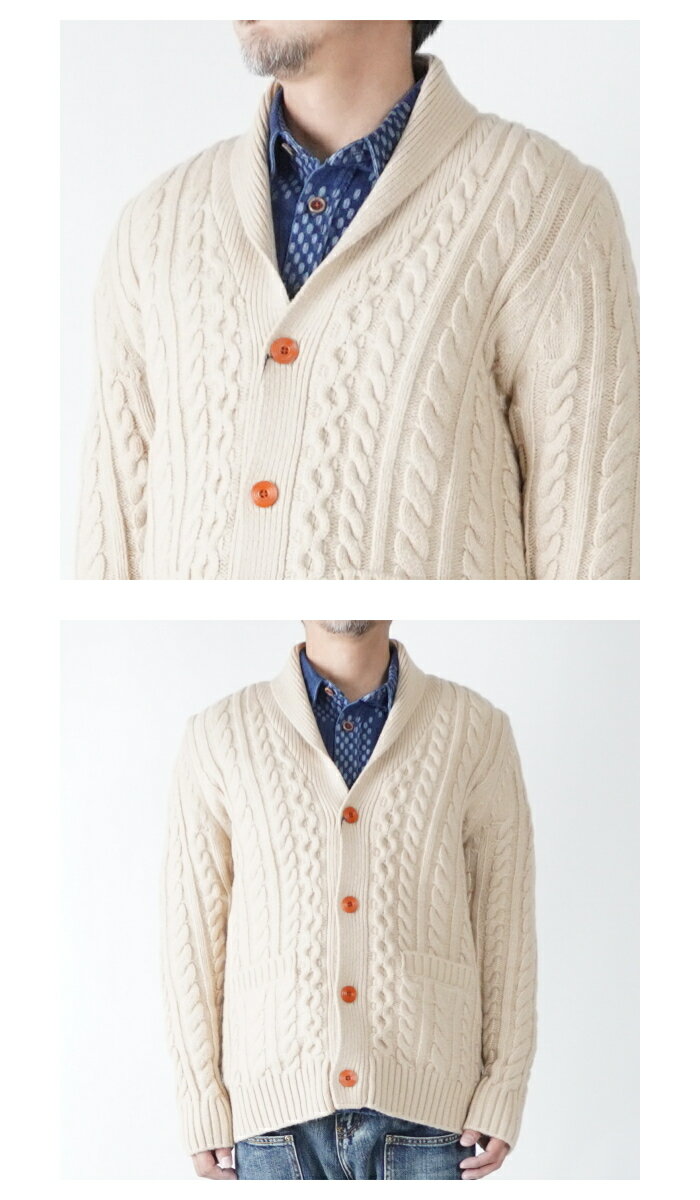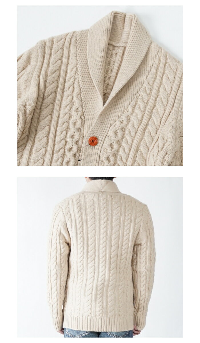 50%OFF期間限定 衣櫻 1601be BEIGE 蚊取線香 デザインボタン ショールカラー ケーブル編みカーディガン ケーブルニット ジャケット カーデ メンズ ケーブル編み
