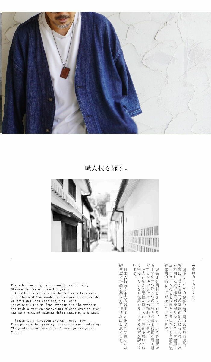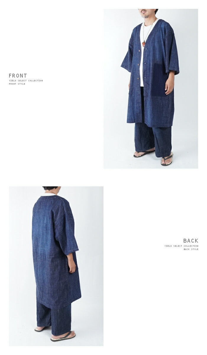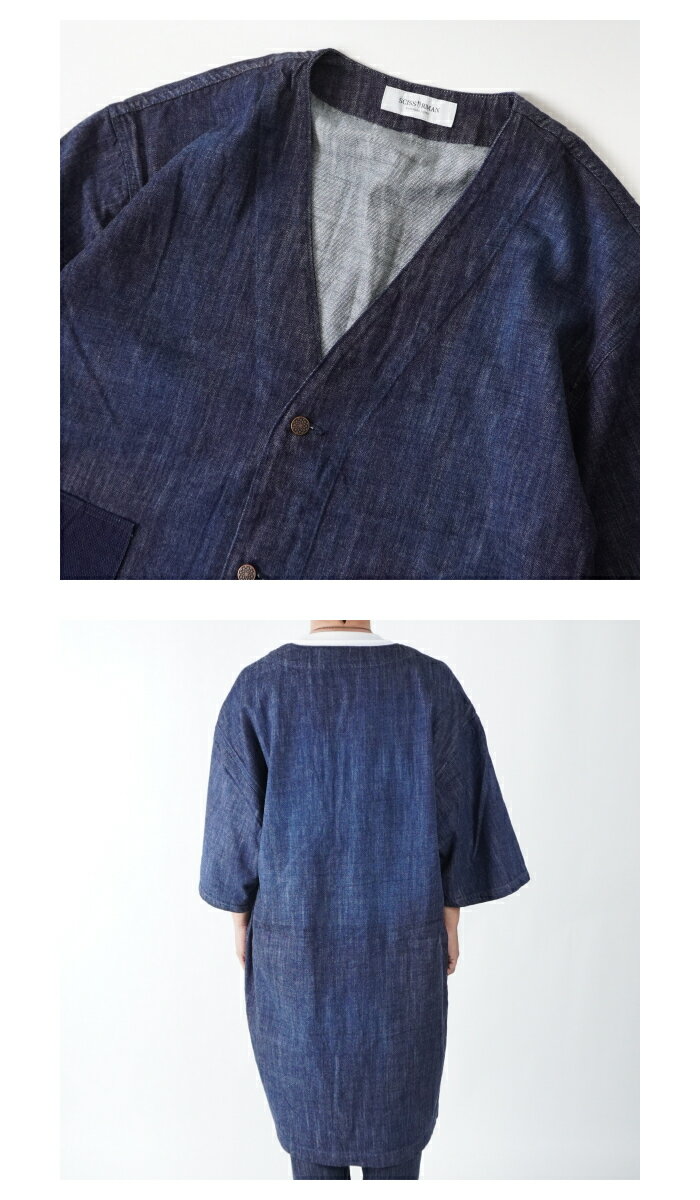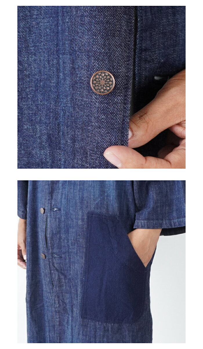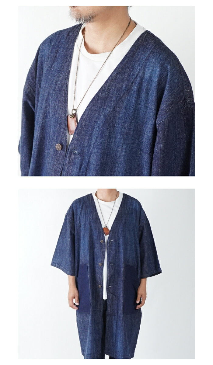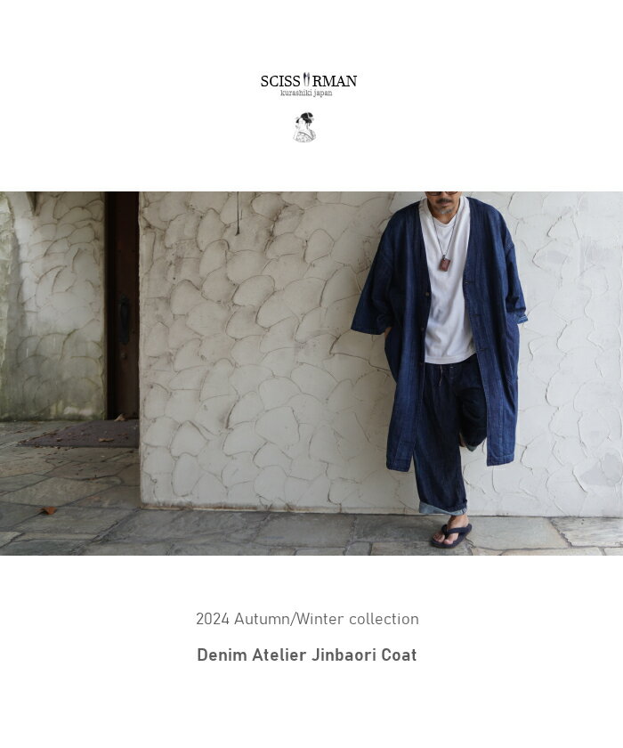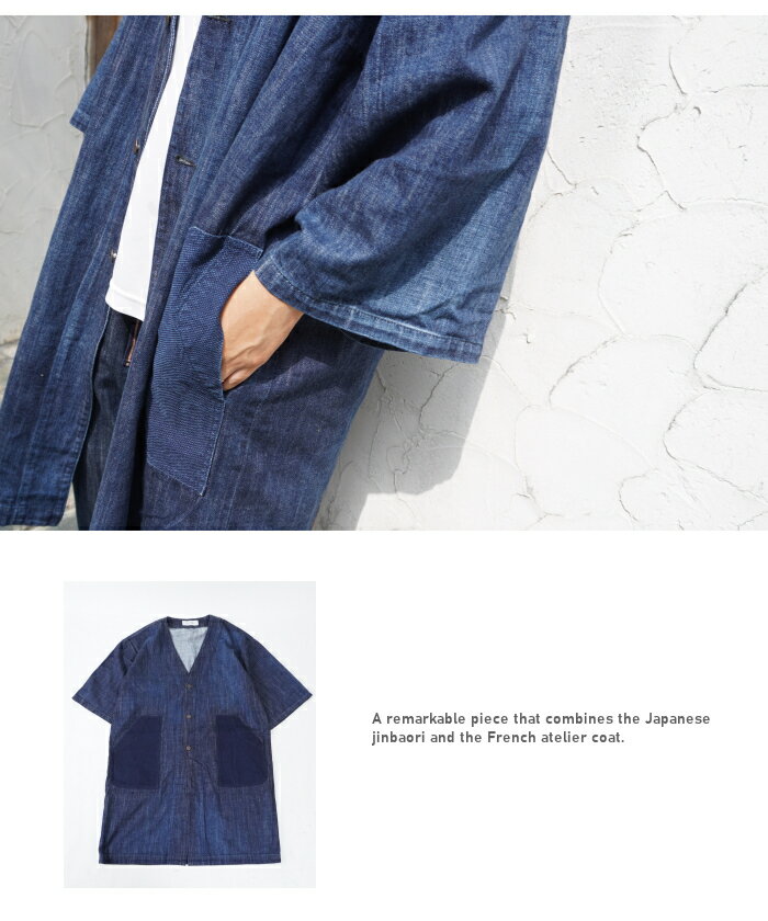SCISSORMAN シザーマン 1041 デニム アトリエ 陣羽織コートジャケット インディゴ刺子切替 Denim Atelier Jinbaori Coat 岡山児島製 日本製 半端袖 半纏 ロングクート 野良着