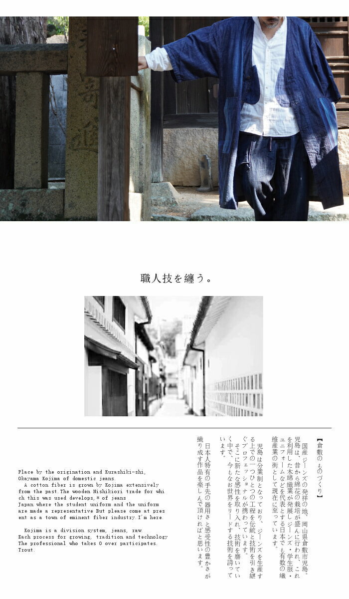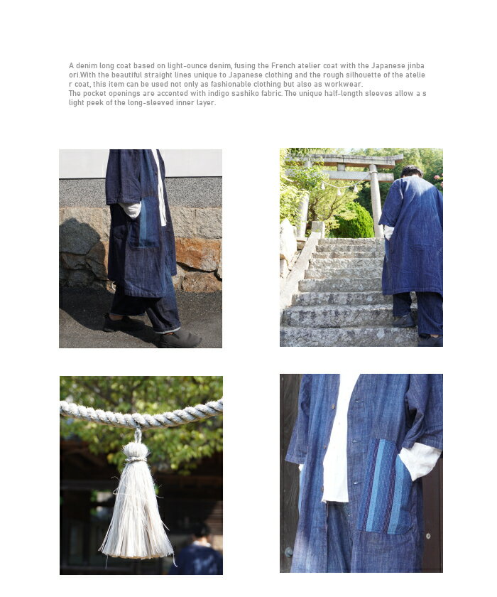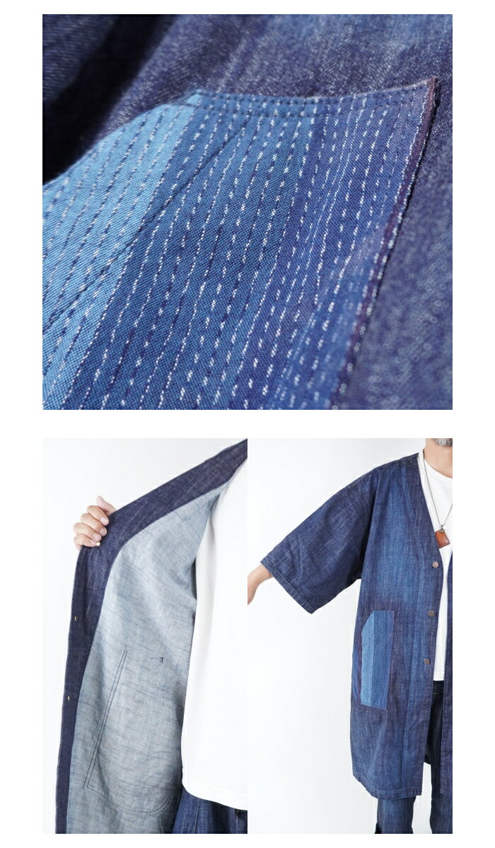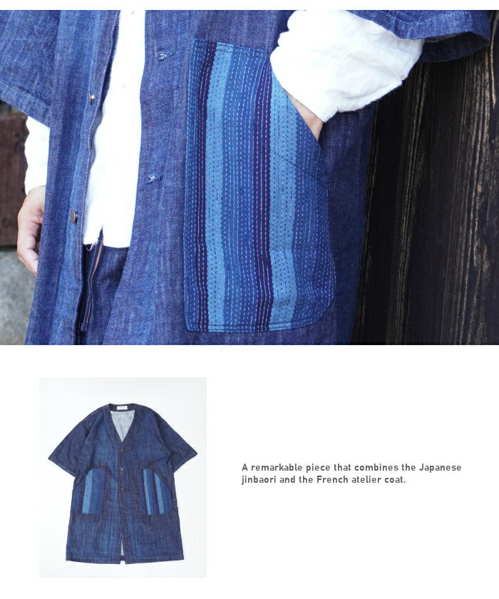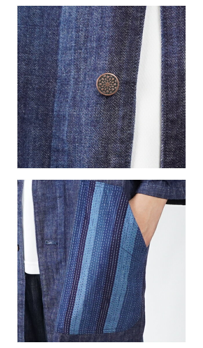 30%OFF SALE SCISSORMAN シザーマン 1041 デニム アトリエ 陣羽織コートジャケット 縞絣刺子切替 Denim Atelier Jinbaori Coat 岡山児島製 日本製 半端袖 半纏 ロングクート 野良着