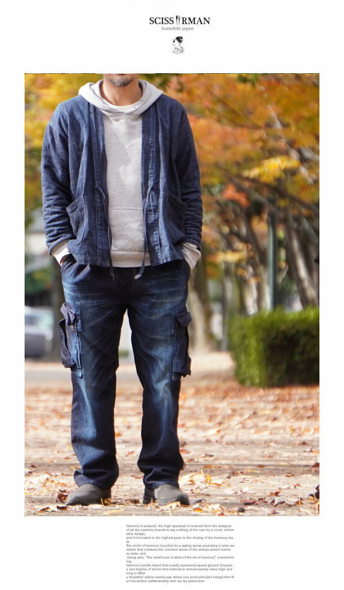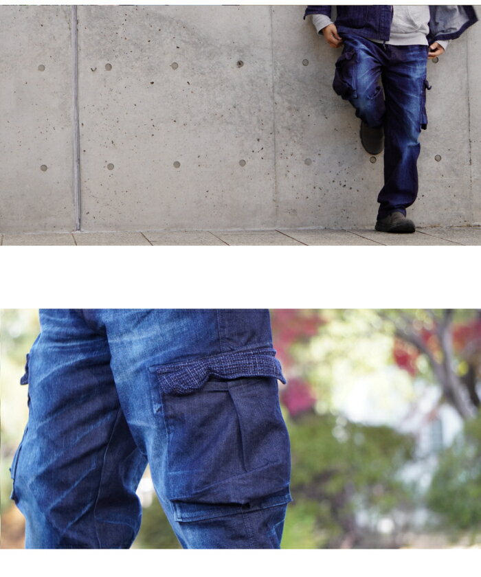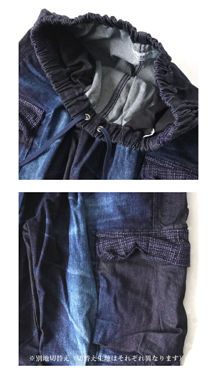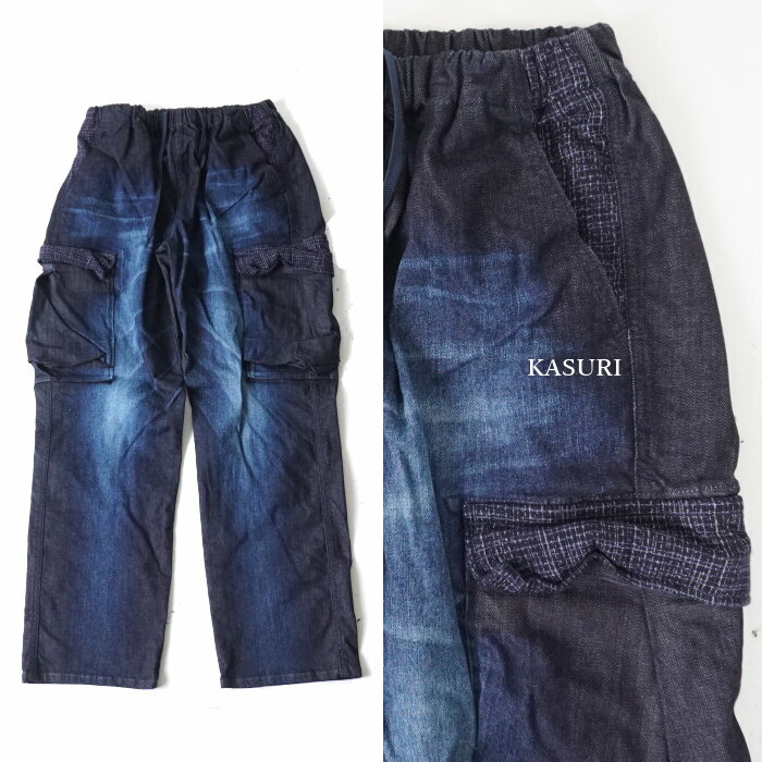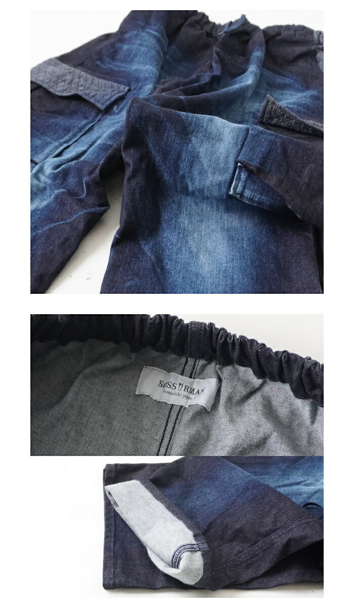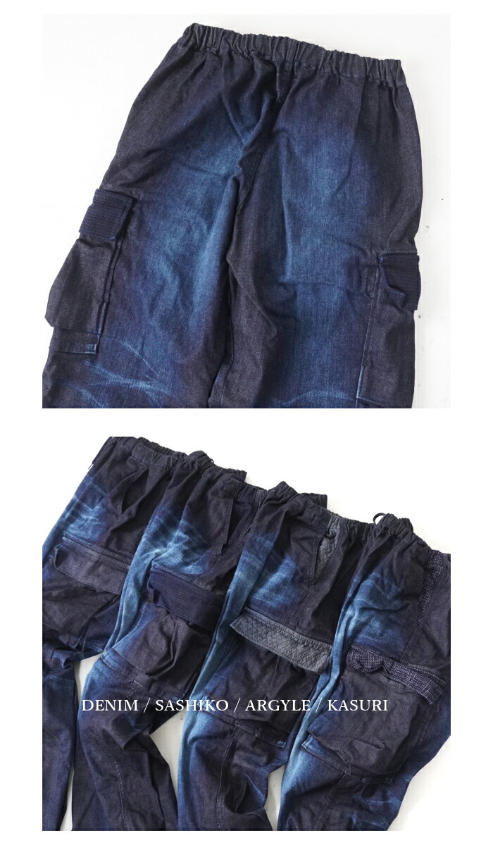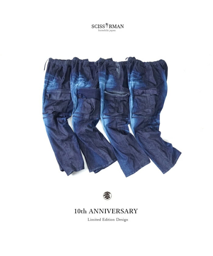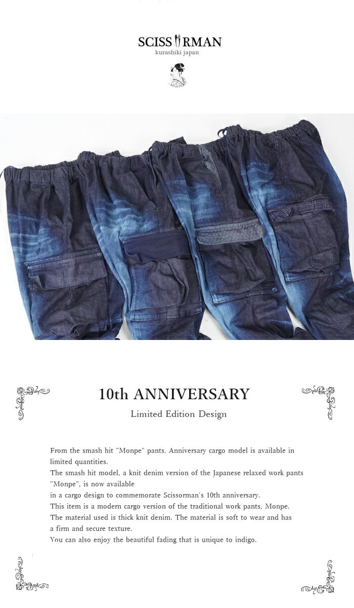 SCISSORMAN 10周年記念限定モデル インディゴニットデニム もんぺカーゴパンツ 刺子 アーガイル 絣 デニム 岡山児島製 メンズ ユニセックス アニバーサリーモデル ニットデニム 日本製