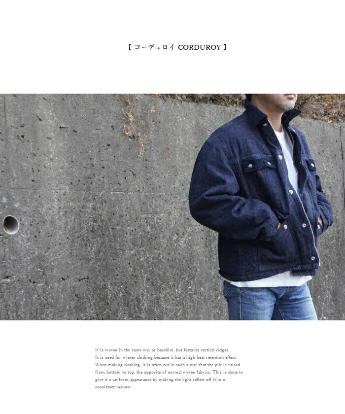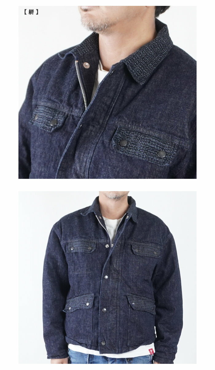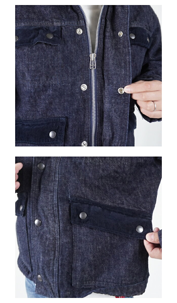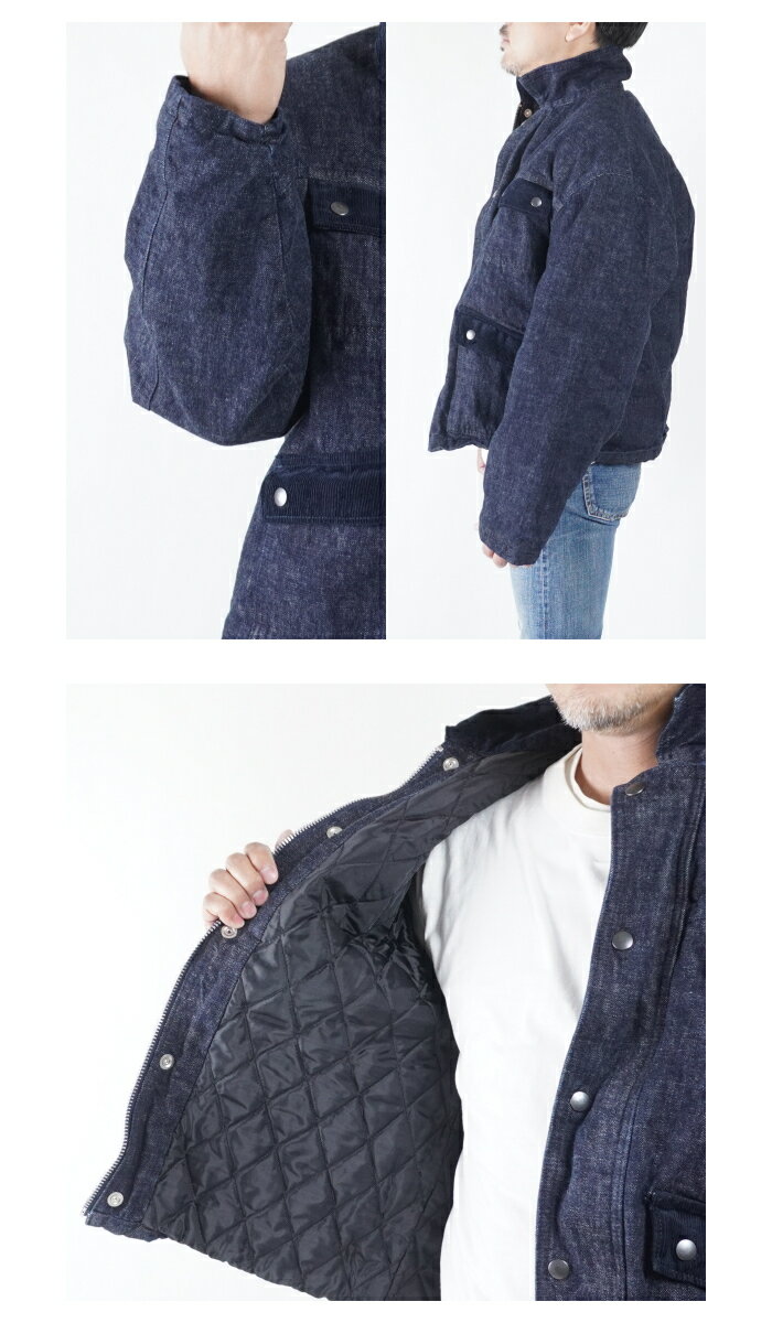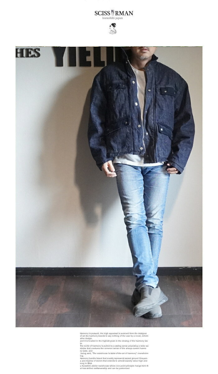 SCISSORMAN シザーマン 10周年記念限定 絣 コーヂュロイ切替 スタンドカラー 裏付き デニムジャケット ワンウォッシュ 岡山児島製 キルティング Gジャン カバーオール バイカー キャンプ 趣味 メンズ アニバーサリーモデル 日本製 男の趣味 春 秋 冬