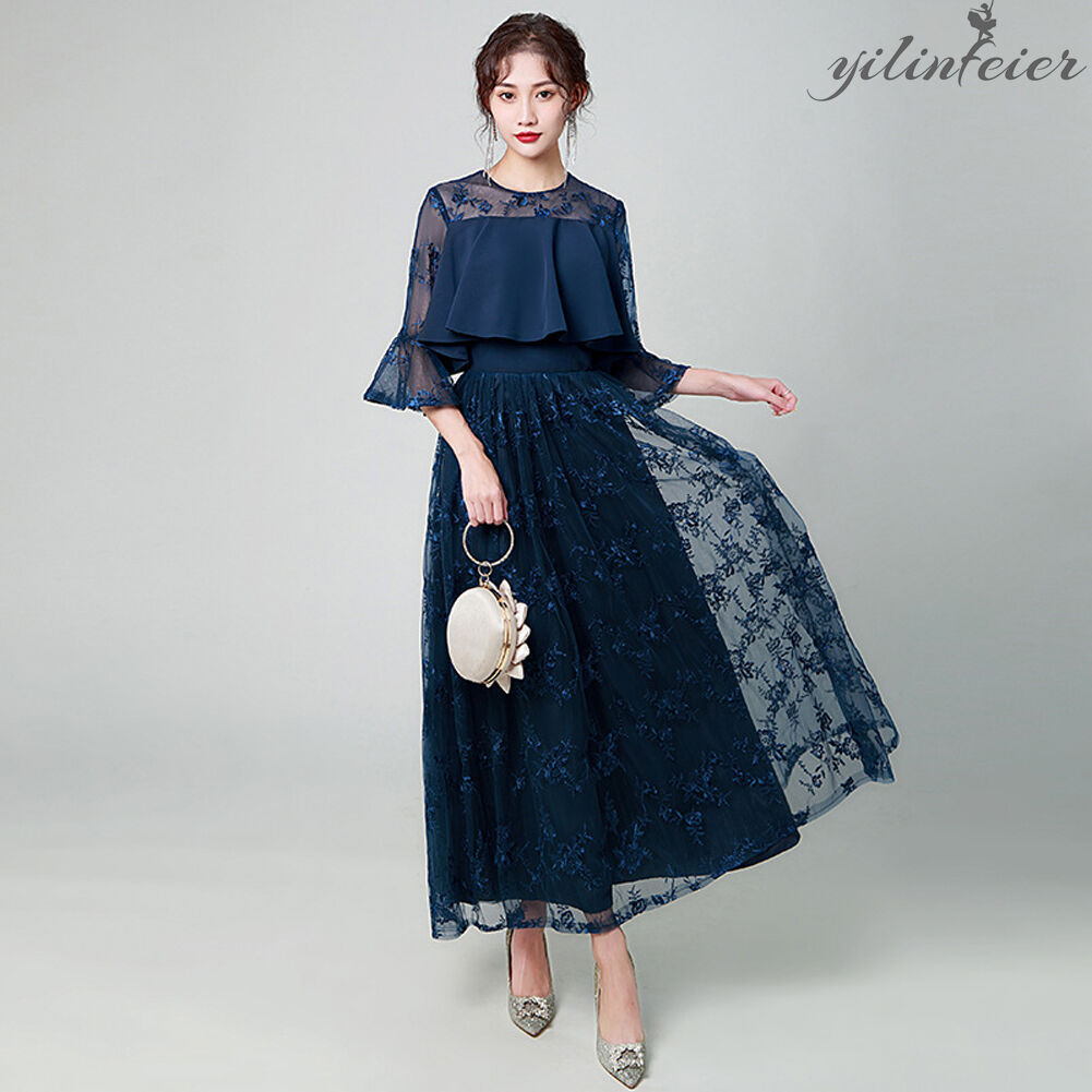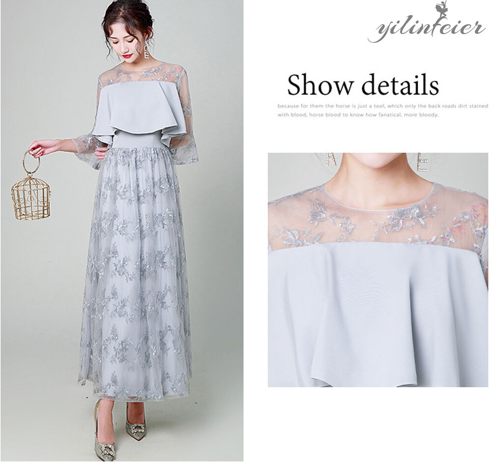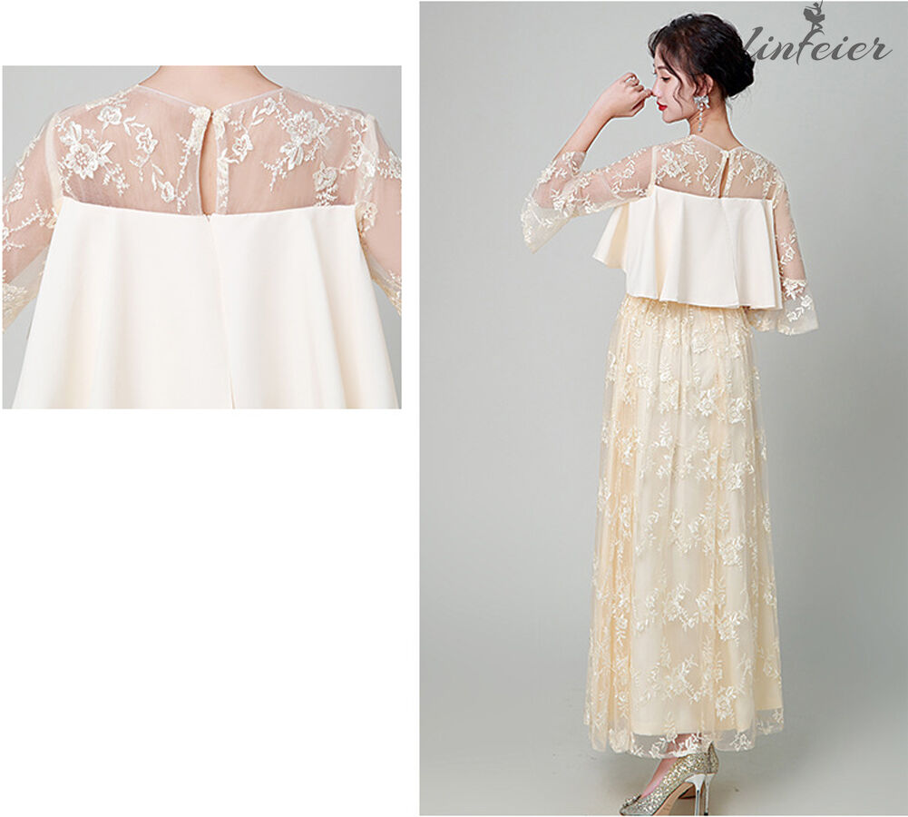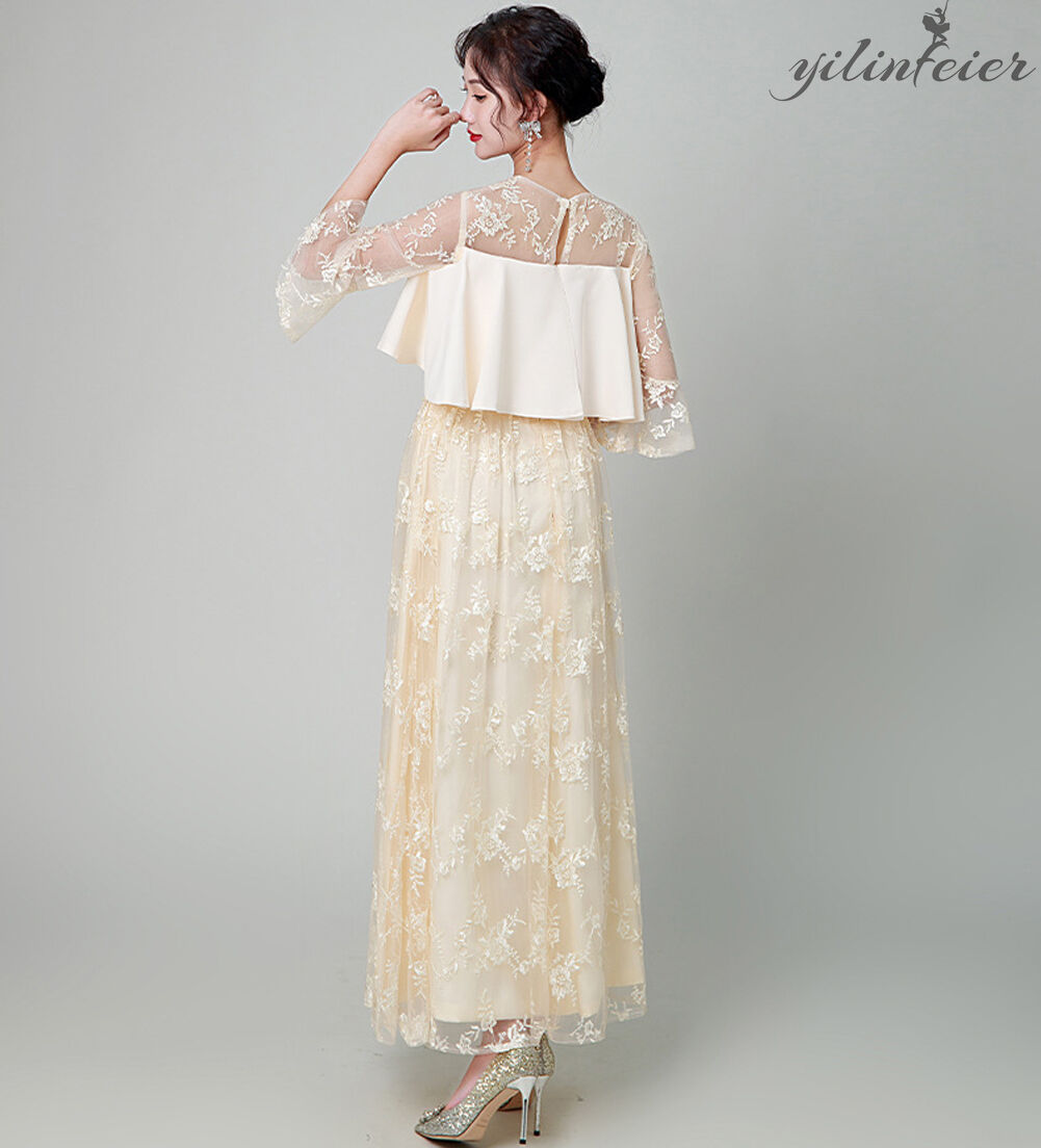 パーティードレス 結婚式 披露宴 お呼ばれ ロング丈 お掛けフリル シースルー レース ドレス フォーマルドレス 体型カバー ブライズメイド ドレス パーティドレス レディース ワンピース ドレス 謝恩会 発表会 演奏会 同窓会 女子会 二次会 卒業式洋服海外通販