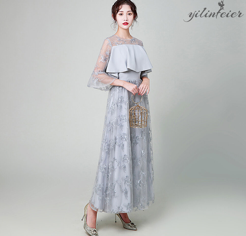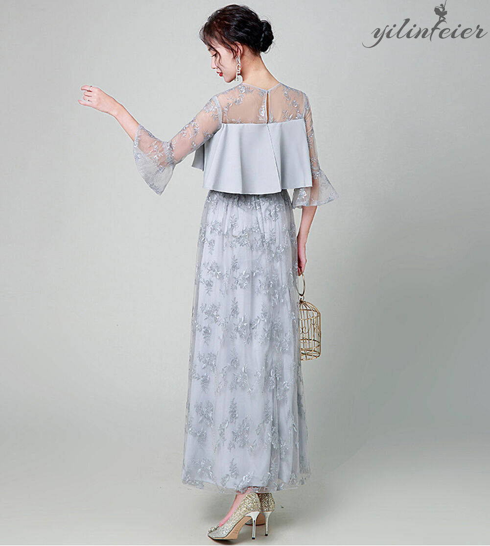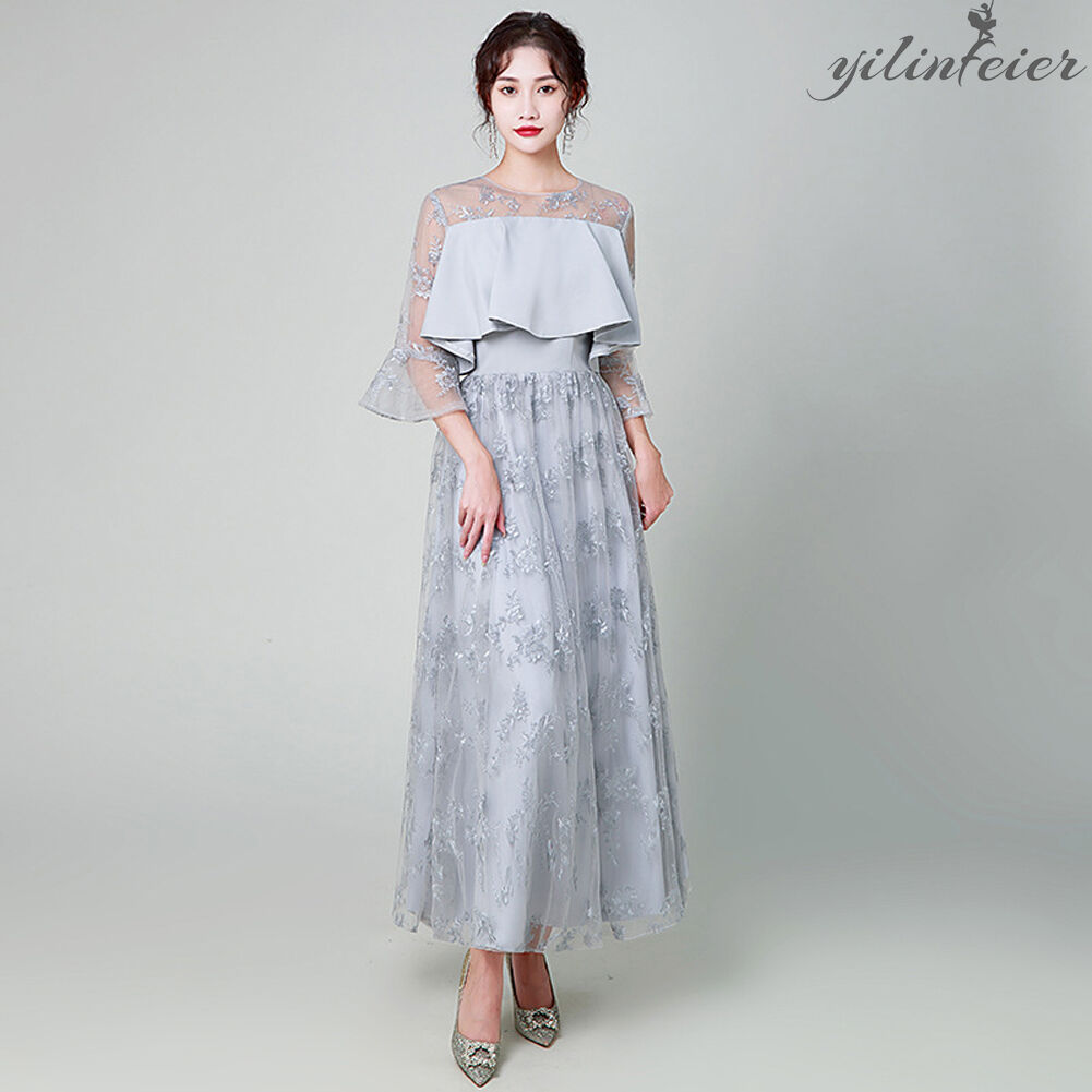 パーティードレス 結婚式 披露宴 お呼ばれ ロング丈 お掛けフリル シースルー レース ドレス フォーマルドレス 体型カバー ブライズメイド ドレス パーティドレス レディース ワンピース ドレス 謝恩会 発表会 演奏会 同窓会 女子会 二次会 卒業式洋服海外通販