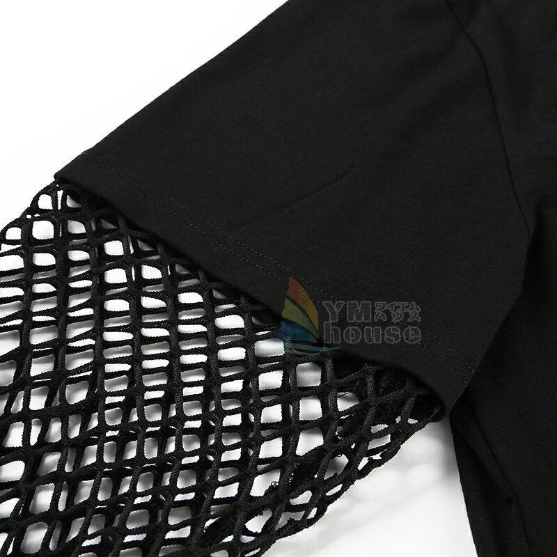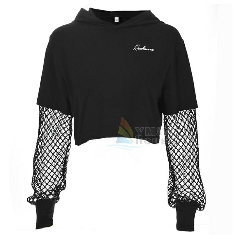 即納 メッシュトップス レディース ダンス衣装 送料無料 ヒップホップ 袖 パーカー 長袖 トップス ショート丈 重ね着風 ブラック ダンス衣装 HIPHOP コスチューム ヒップホップ