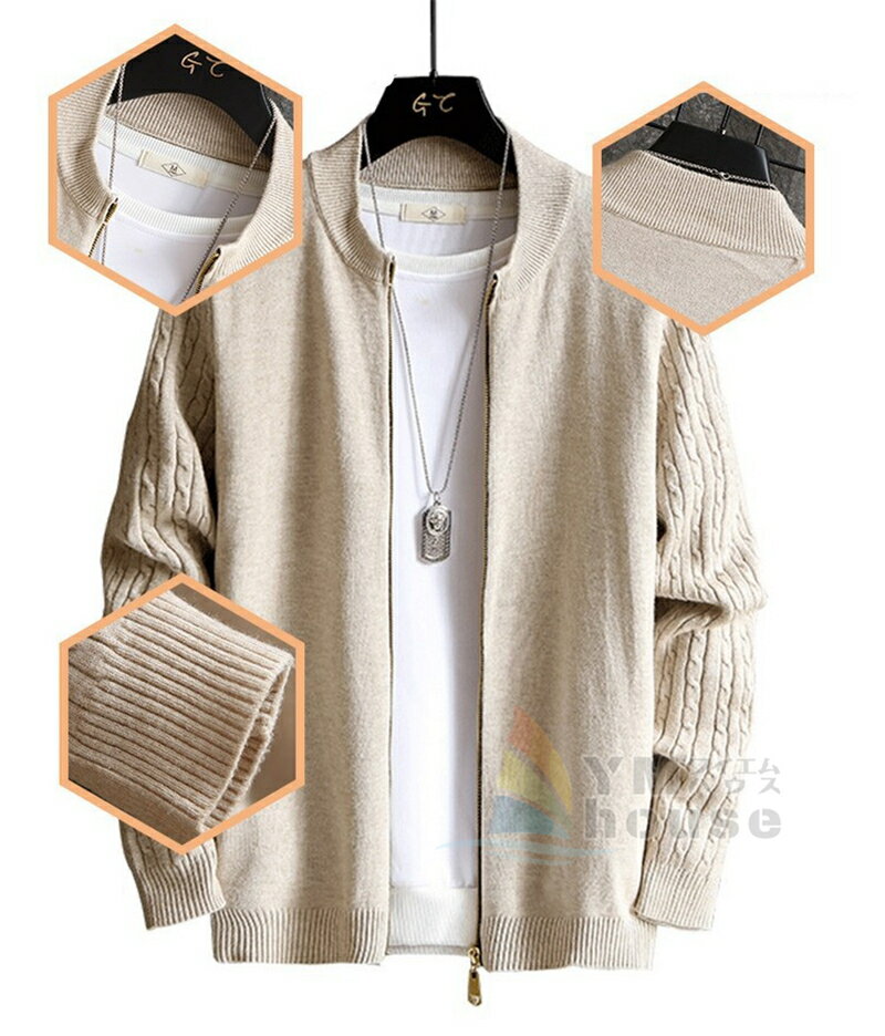 【送料無料】カーディガン メンズ 長袖 アウター ニットカーディガン メンズトップス ジップアップ 羽織 はおり カーデ セーター トップス 無地 クルーネック父の日