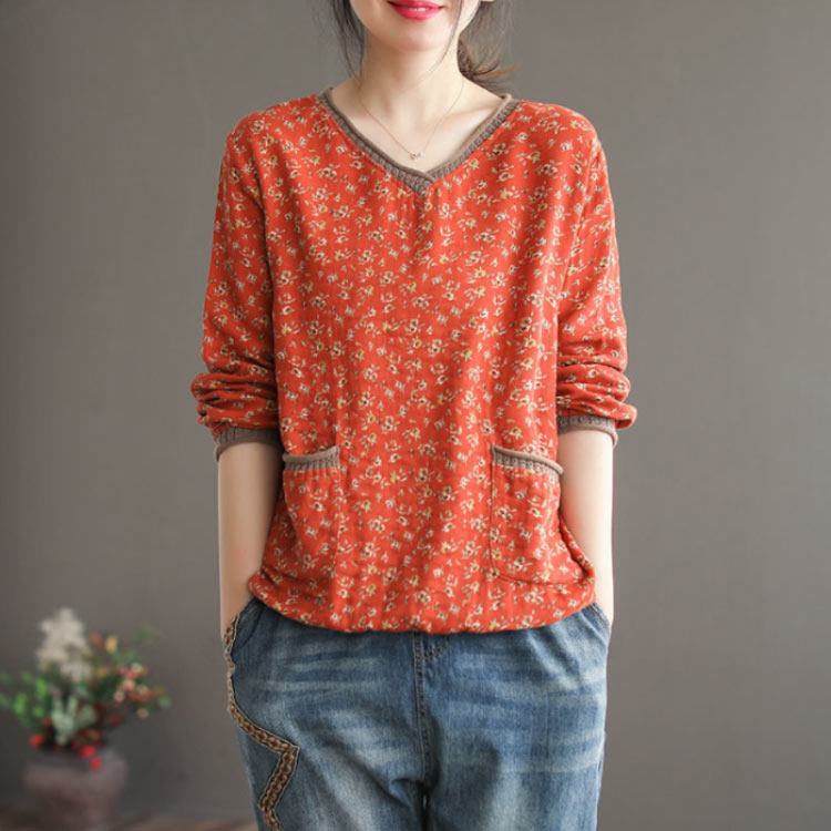 送料無料 チュニック トップス ブラウス 花柄 レディース おしゃれ カットソー レディース プルオーバー 30代 40代 50代 vネック 体型カバー ゆったり きれいめ 長袖 花柄 総柄 大きいサイズ カジュアル 春服 春 夏 秋 秋服