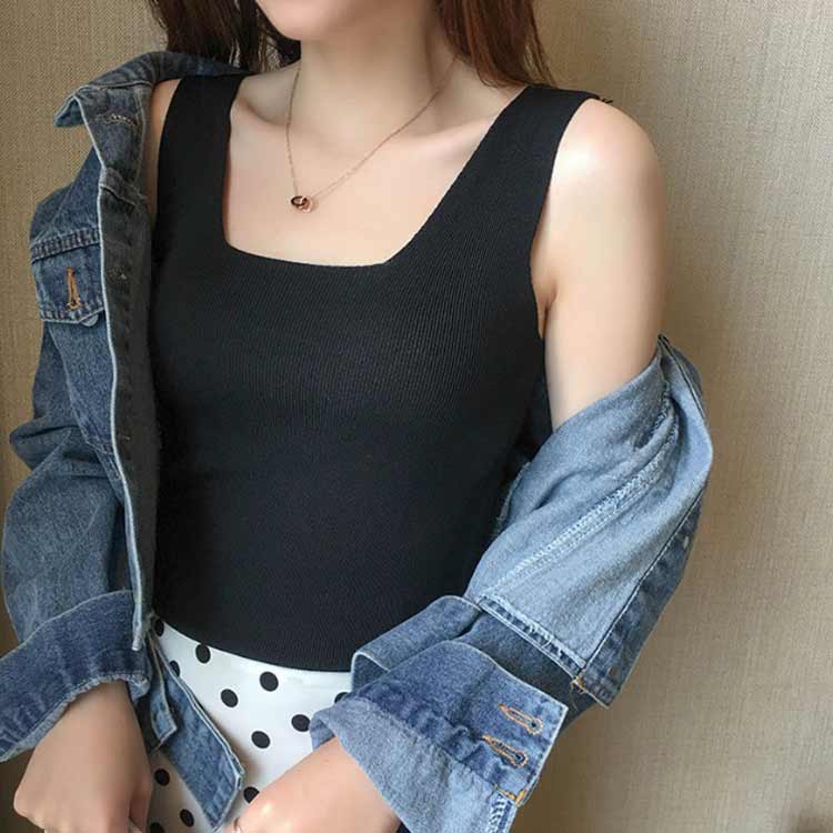 2枚セット スクエアネック ノースリーブ ニットトップス サマーニット タンクトップ レディース ブラ紐隠しインナー インナー リブニット キャミソール レイヤード 重ね着 ニットインナー ノースリーブ ニット きれいめ カジュアル 送料無料