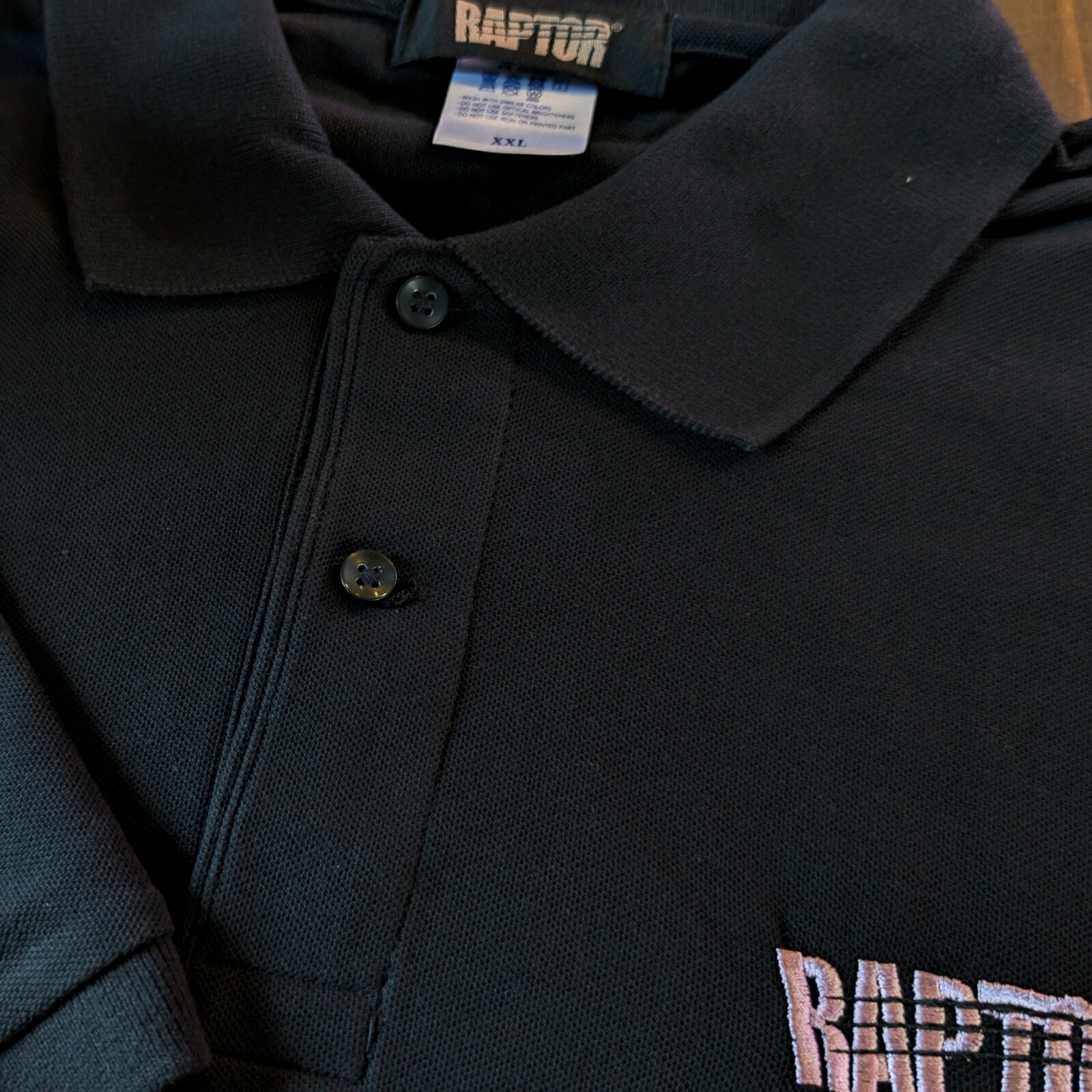 【当店オリジナル】ラプターライナー 刺繍ロゴ5.3オンス ドライポロシャツ ブラック(刺繍カラー:銀・薄紫)RAPTORJAPAN承認品 RAPTORLINER