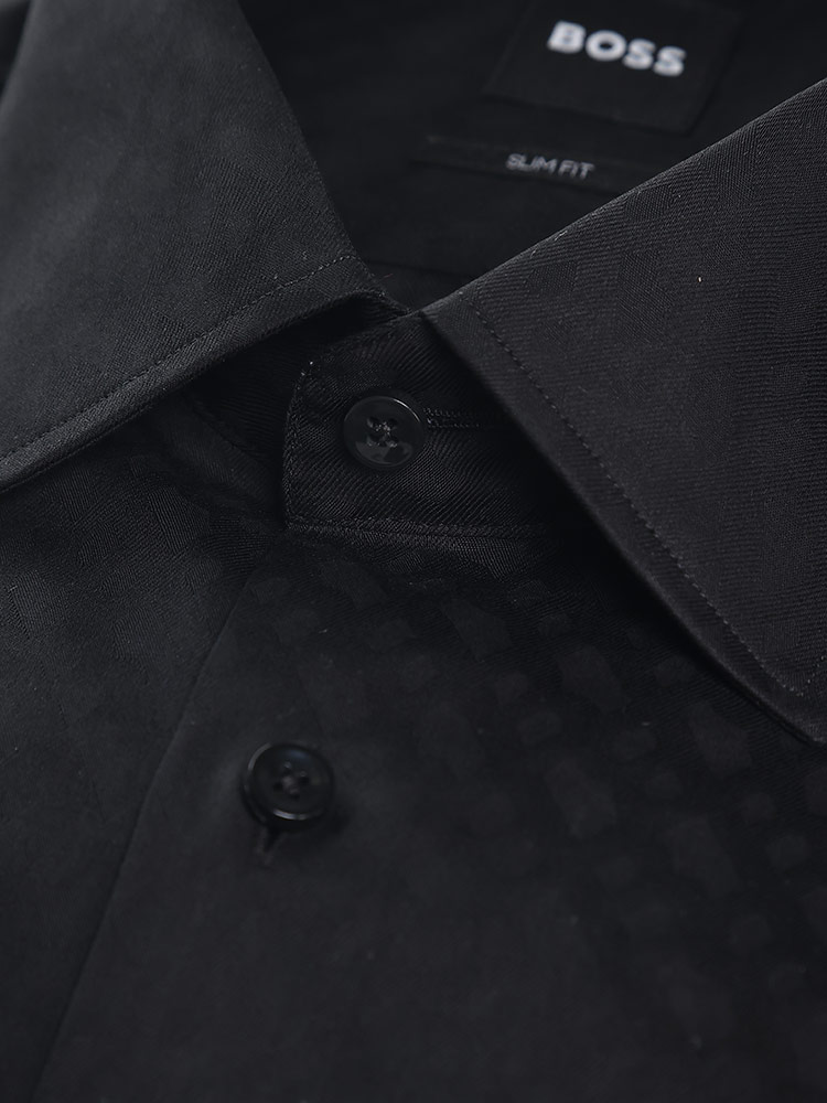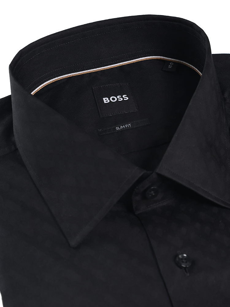 ヒューゴボス シャツ メンズ HUGO BOSS ドレスシャツ ワイシャツ カットシャツ ジャガード 長袖 クロ 黒 ブランド ビジネス フォーマル スリムフィット 大きいサイズあり HBHANK10242722
