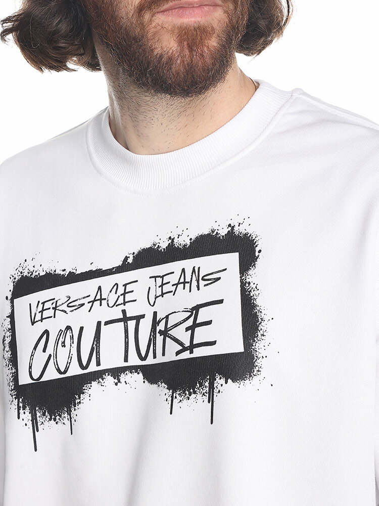 ヴェルサーチェ トレーナー VERSACE JEANS COUTURE メンズ スウェット ロゴ プリント クルーネック シロ 白 ブランド トップス プルオーバー 長袖 大きいサイズあり ベルサーチ VC75GAIT15CF01O