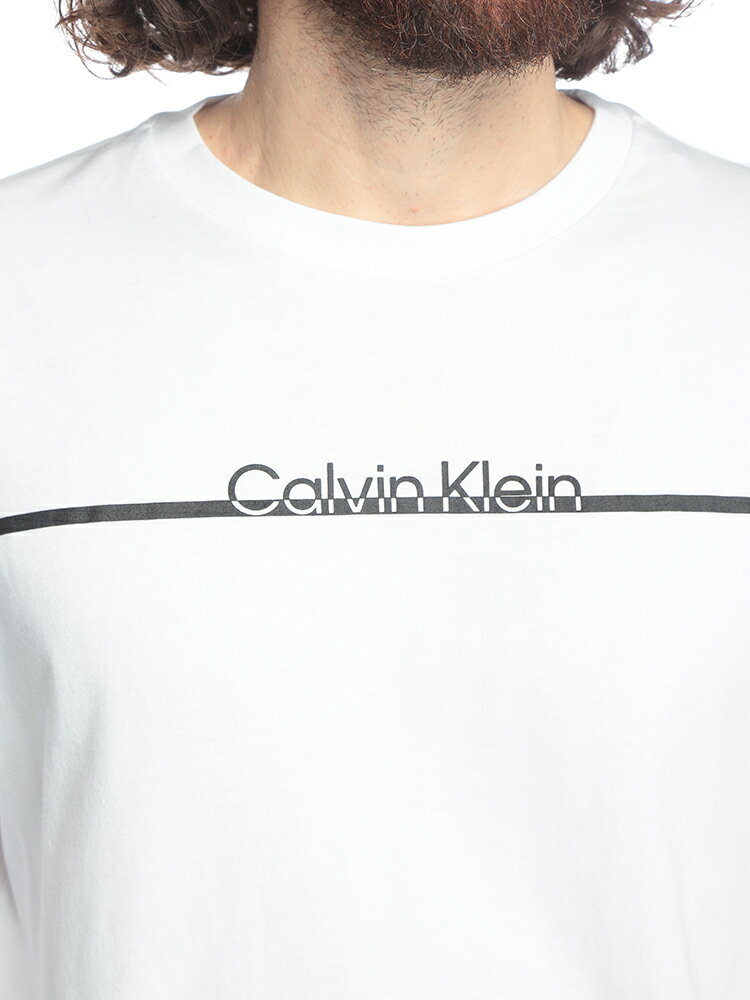 カルバンクライン Calvin Klein ラインロゴ クルーネック 長袖 Tシャツ CKK10K114343 ブランド メンズ 男性 トップス Tシャツ プリント ロンT コットン
