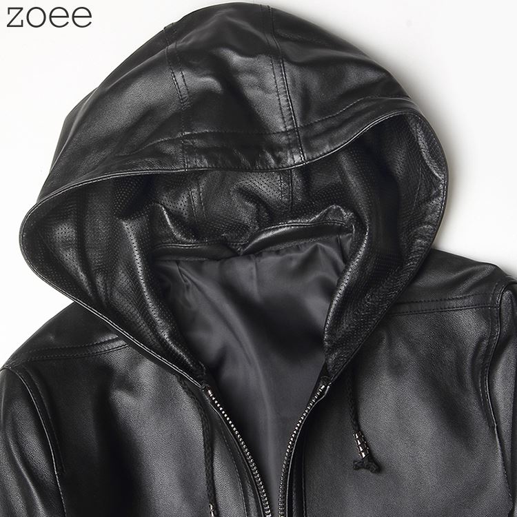 レザーコート メンズ アウター 秋冬 本革 ラムレザー コート フード付き シンプル 長袖 無地 大きいサイズ ブラック M/L/2L/3L/4L/5L 【佐】 f4b20