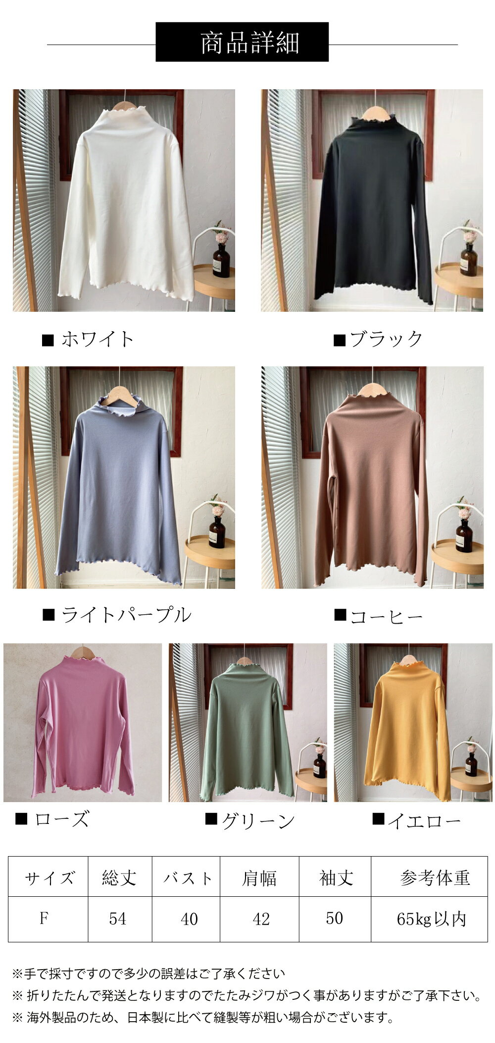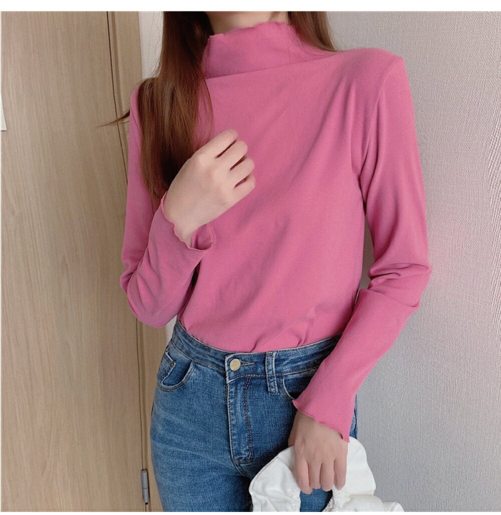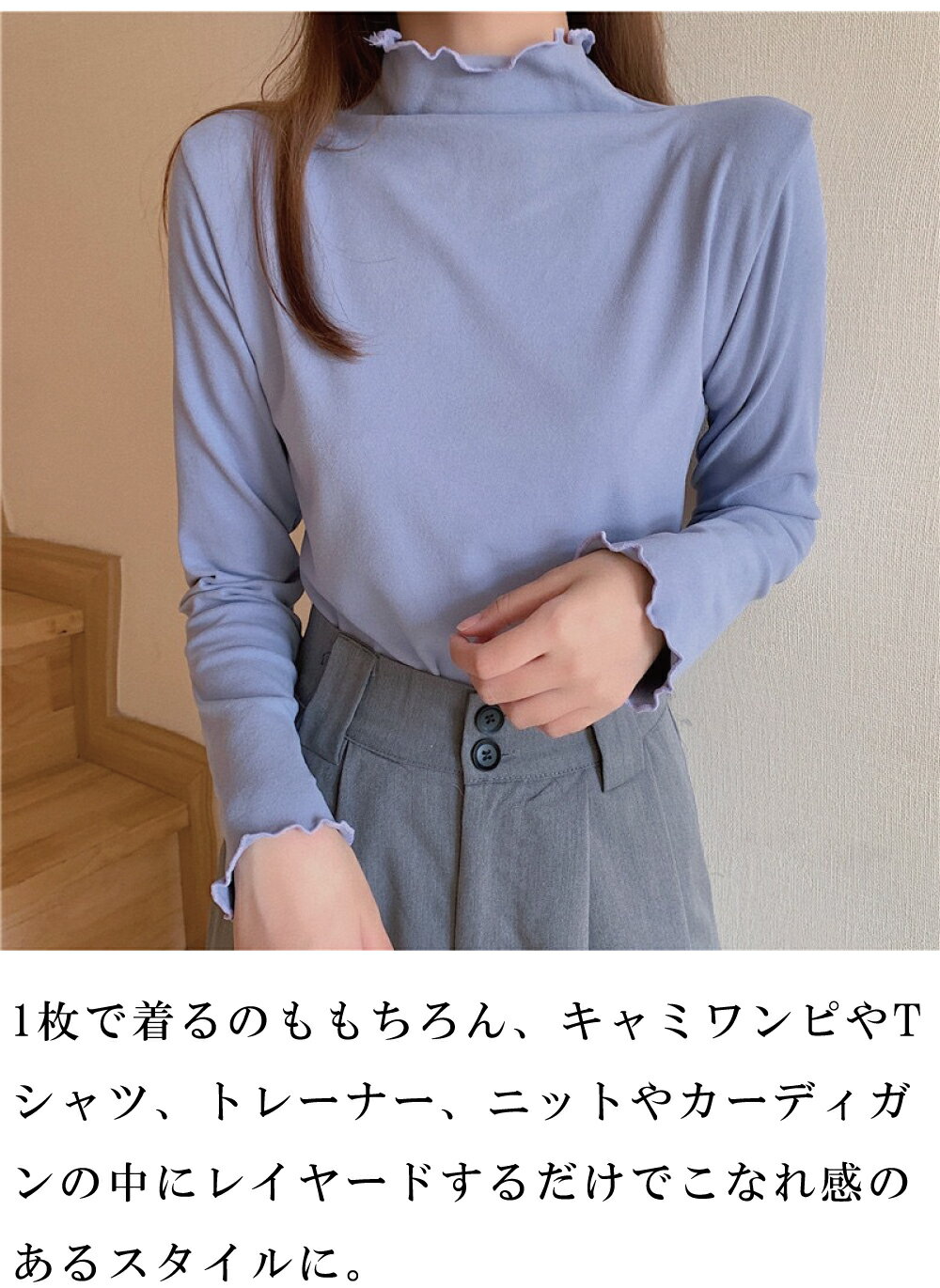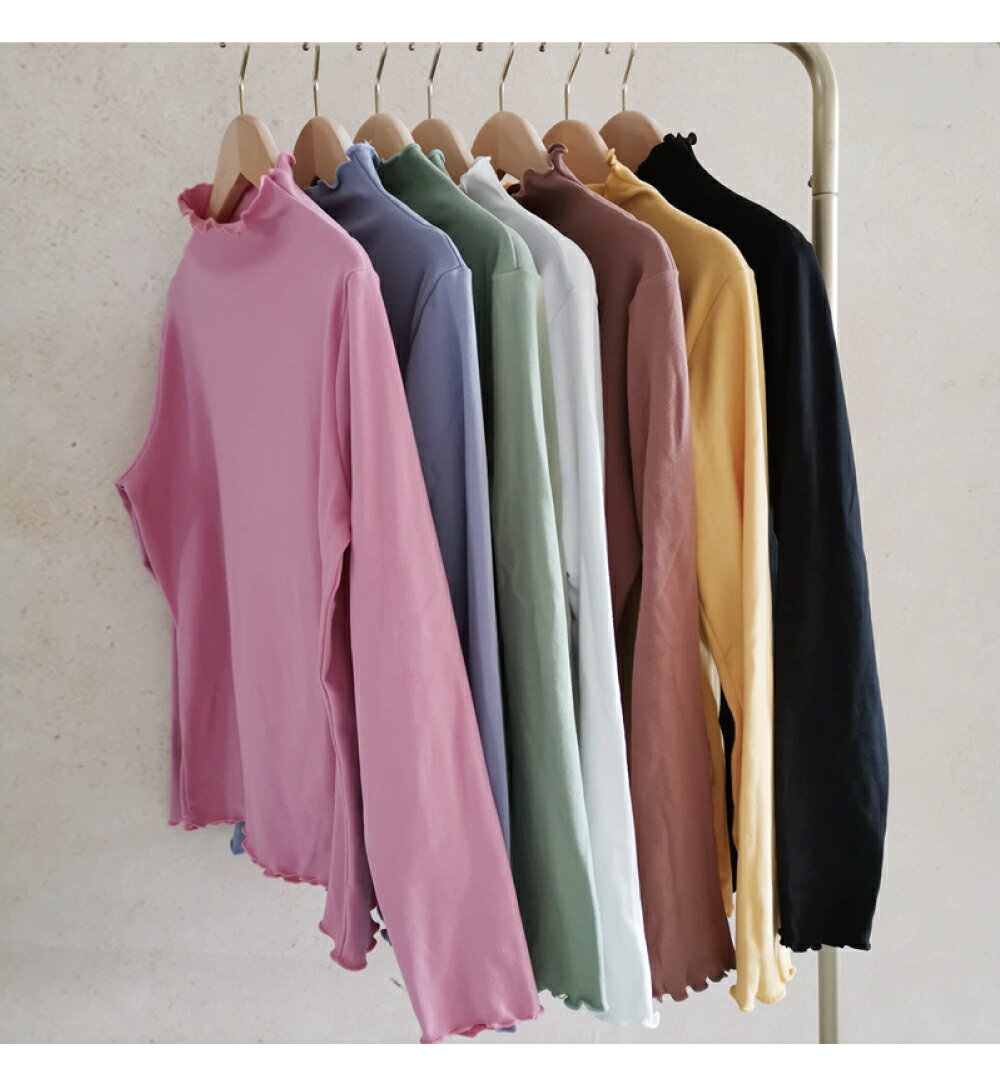 \10月超衝撃セール★1点568円!3枚クーポンで!/ トップス 長袖 インナー プルオーバー ハイ ネック 秋 冬 春 フリル 無地 重ね着 可愛い キレイメ カットソー カジュアル レディース