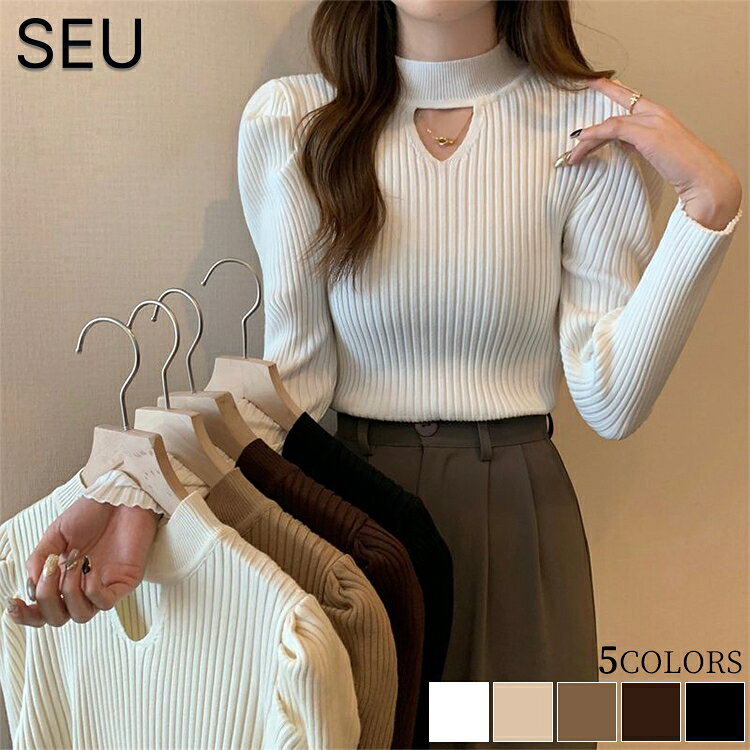 【在庫一掃】カットアウトリブニットトップス 細身 カッティングニット リブニットトップス レディース 春 秋 冬 長袖 ワンサイズ ニットセーター カットソー カジュアル 無地 女子会 おでかけ セクシー おしゃれ きれいめ 韓国 SEU seu22q31057