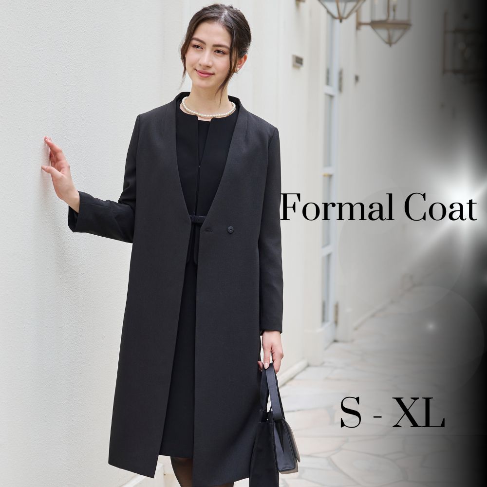 andgram フォーマルコート ロングコート レディースコート 羽織り 喪服 礼服 レディース 入学式 卒業式 法事 ビジネス お葬式 通勤 オフィス シンプル ガウン 裏付き ノーカラー スタイリッシュ 黒 S M L LL