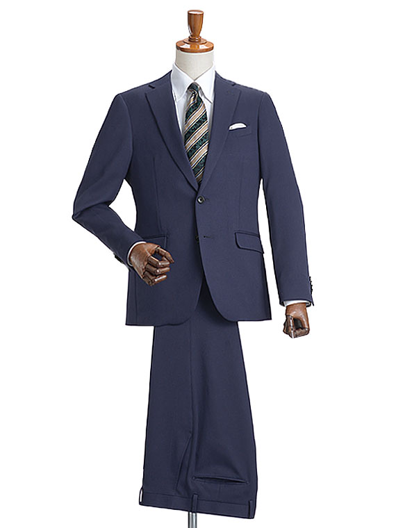スーツノータック スリム ビジネススーツ メンズ洗えるパンツ 清涼「Cool Max」 シアサッカー ウール50【YA体/A体/AB4/BB4】紺 グレー ストライプ 全2柄 18000 bi tGS50003-rev-