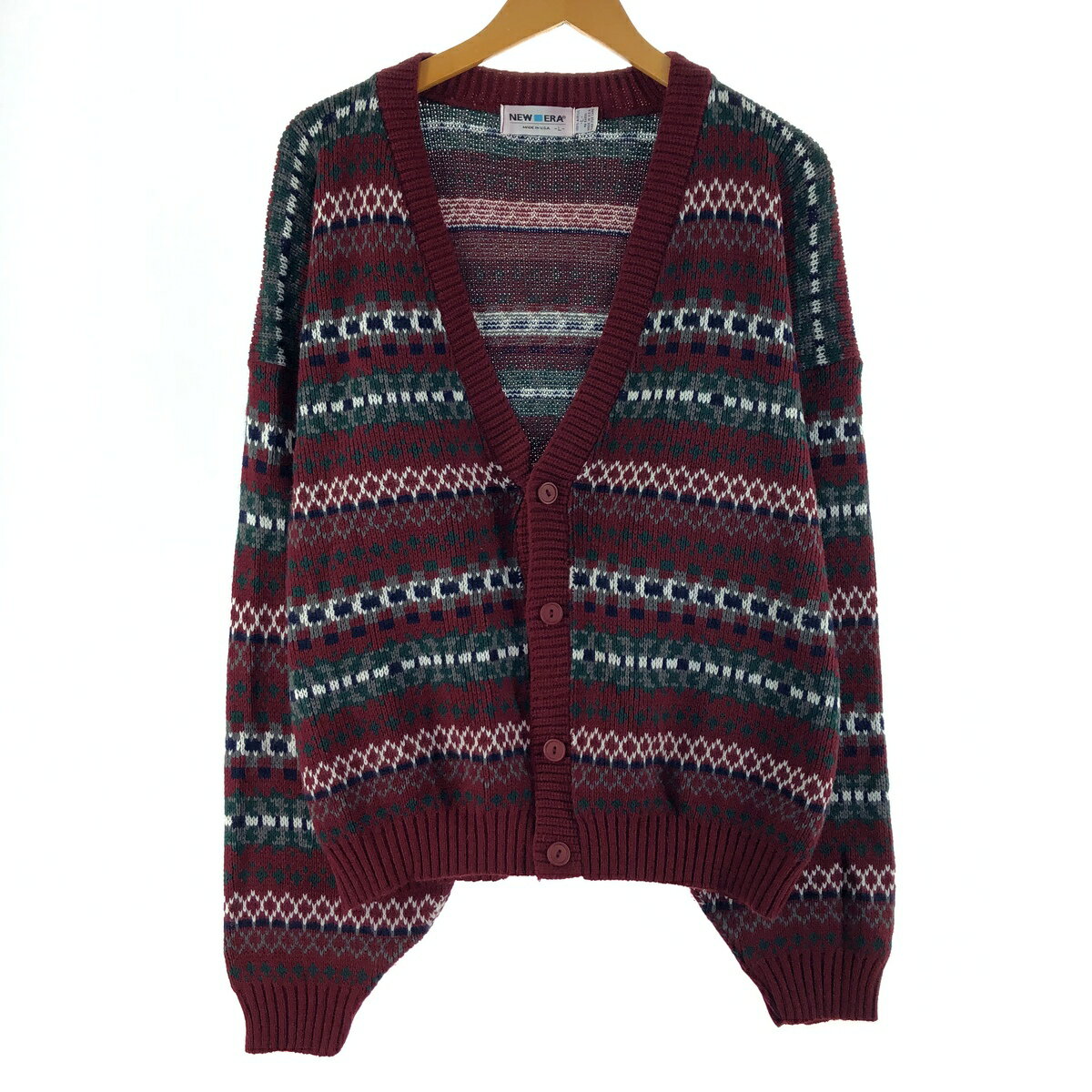 古着 ニューエラ NEW ERA 総柄 アクリルニットカーディガン USA製 メンズXL /eaa369581 【中古】 【230919】【P2308】 ss2501_50